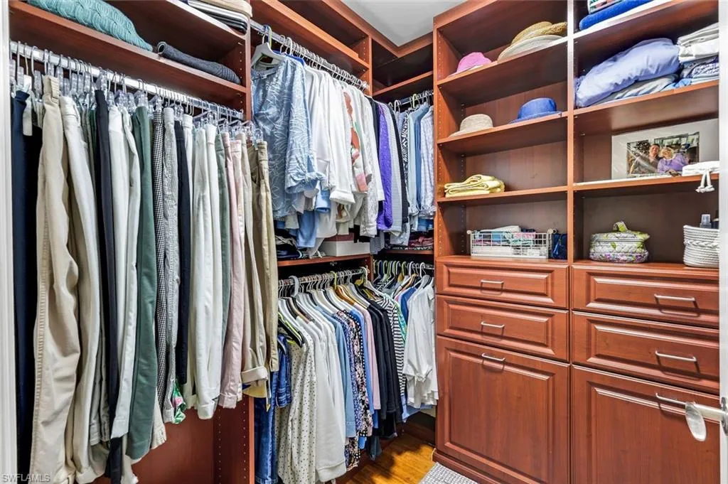 The primary suite includes a custom-organized master closet and a beautifully appointed bathroom featuring a soaking tub, separate walk-in shower, dual sinks, and a wonderfully spacious, luxurious feel. The guest bedroom is on the opposite side of the condo offering it’s own privacy and bathroom with granite counters, linen space and quality finishes.