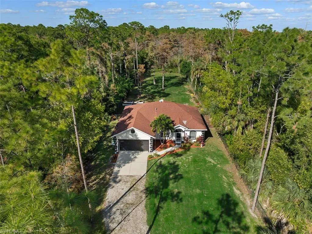 Looking for privacy? You’ve found it! This immaculate 3 Bedroom, 2 bath plus den/flex room home sits on 1.14 acres and features a cleared fully fenced yard, plenty of room for a pool with a gated entrance perfect for those seeking space and security. Inside you will find a pristine interior with custom kitchen cabinets, granite countertops throughout and stainless-steel appliances. The home also includes a dedicated laundry room with washer and dryer, plantation shutters on all windows, and 10 ft. ceiling in both the great room and master suite, accented by an elegant tray ceiling. The luxurious master bath offers dual sinks, a separate shower, and a relaxing soaking tub. Additional features include a 360-sprinkler system, reverse osmosis water system, ADT alarm and a state-of-the-art security system equipped with motion sensor cameras. Conveniently located minutes from the new Publix, Aldi, Ace Hardware, Chase Bank, several restaurants and Immokalee Road, this home offers privacy without sacrificing access to everyday essentials and main roads for ease of travel. A perfect blend of seclusion, convenience, and modern comfort move in ready and waiting for its new owner.