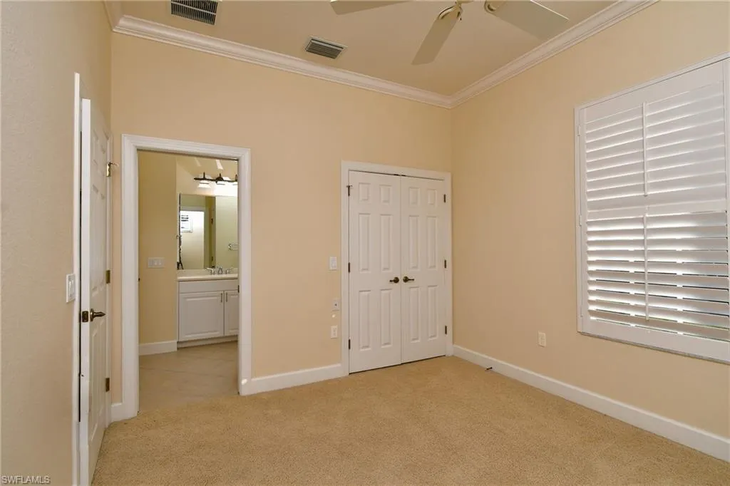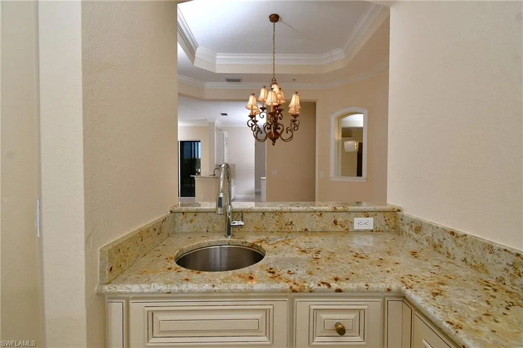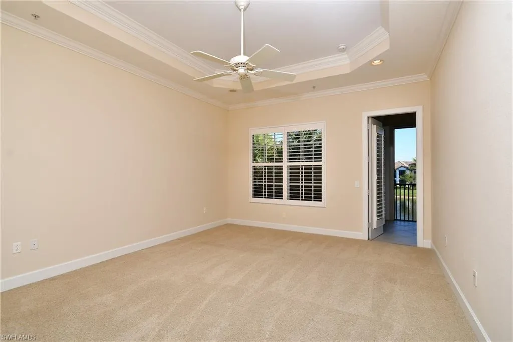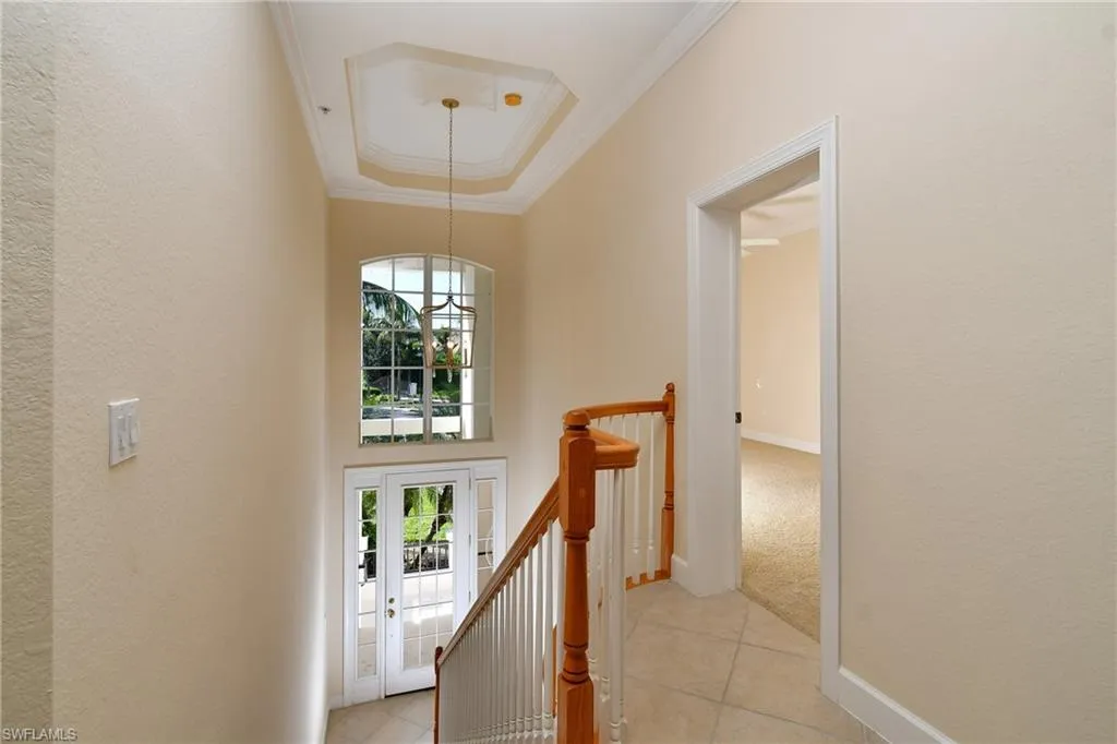 Indulge in resort-style luxury at this stunning top-floor end unit in the exclusive, gated community of Players Cove at Lely Resort. This spacious three-bedroom-plus-den, three-bath residence boasts an impressive array of high-end upgrades, complemented by tranquil water views. The elegant open-concept great room is ideal for entertaining, featuring a stylish seating area, a custom wet bar, and a formal dining room. Large sliding glass doors open to the expansive lanai, creating a seamless indoor-outdoor living and relaxation space. The gourmet kitchen is a chef’s dream, with premium hardwood cabinets, beautiful granite countertops, and stainless steel appliances, making everyday meals and entertaining effortless. Highlights include soaring ceilings with elegant crown molding, and plantation shutters. Two spacious guest en-suite bathrooms, a large wet bar, a versatile bonus room perfect for a home office, and an oversized laundry room enhance the home’s convenience and versatility. The two-car garage offers ample storage space, while a private elevator adds an element of exclusivity. As a resident, you gain access to the prestigious Lely Resort Players Club & Spa, featuring dining, social events, resort-style pools, and a state-of-the-art fitness center. Golf enthusiasts will enjoy the community’s three championship 18-hole golf courses. Experience the luxurious lifestyle you deserve at Players Cove, where every detail is crafted for refined living.