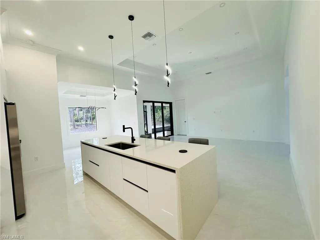 This thoughtfully designed home features 4 bedrooms, 3 full bathrooms, and a 3-car garage. The open floor plan showcases contemporary finishes, impact windows, high ceilings, 13” in some areas, abundant natural light, and flexible living spaces. The 4 bedrooms offers additional guest accommodations, big kitchen on the lanai to enjoy parties or family gatherings, with gas stove top, plenty space outside to enjoy the evening. California closets to have more space to store.