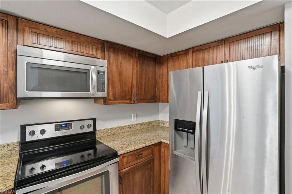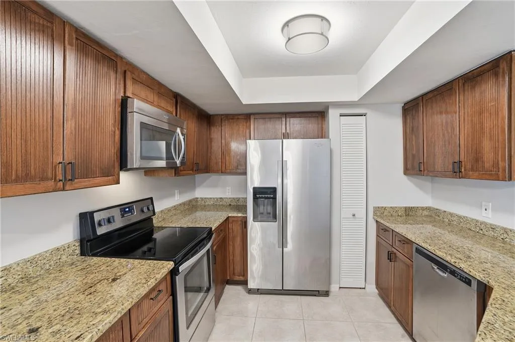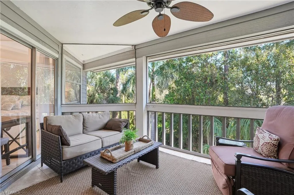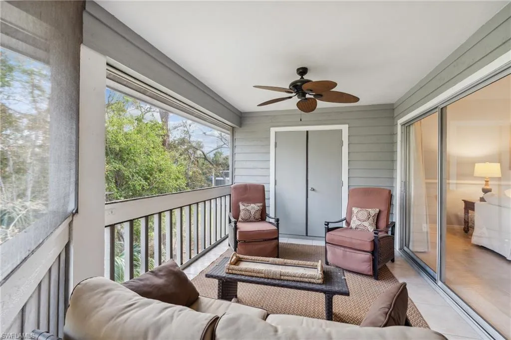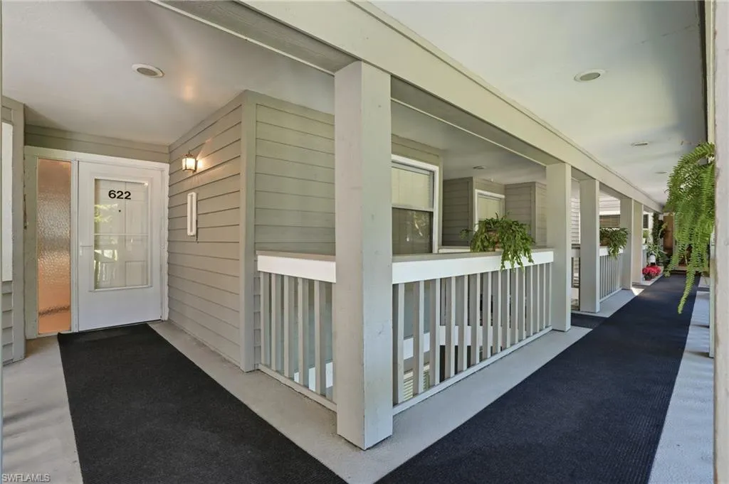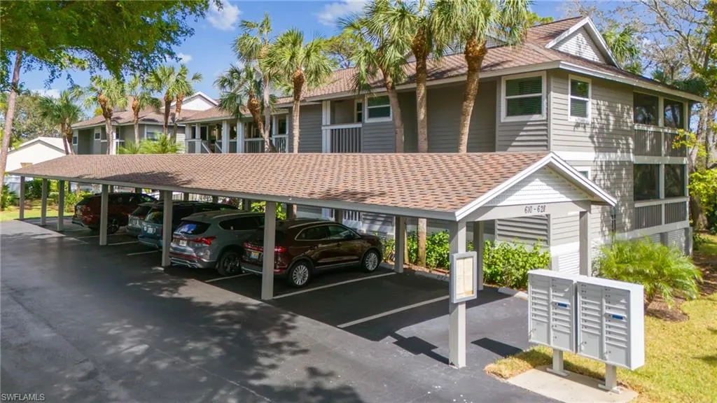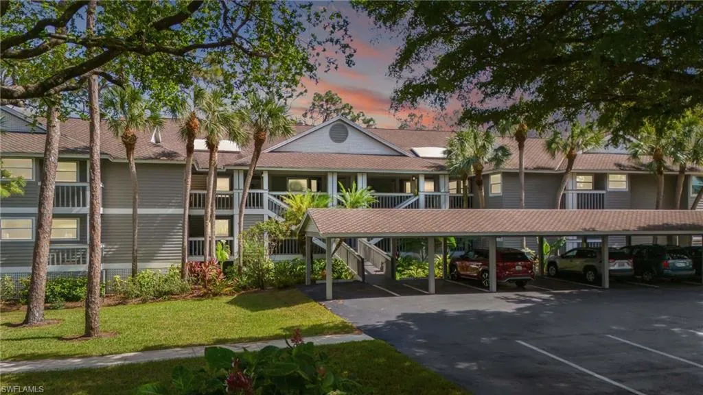 622 Wiggins Bay Drive Unit C-22 in Naples, FL 34110 is a second-floor, 2-bedroom, 2-bath condominium (built in 1987) spanning about 1,390 sq ft. Nestled within the lush, gated Colony at Wiggins Bay community, it overlooks preserved woodlands and features a screened lanai for peaceful relaxation. The interior includes tile flooring, vaulted ceilings, a well-appointed kitchen with stainless-steel appliances, and in-unit laundry for comfort and convenience. Recent upgrades such as a newer A/C and water heater add modern efficiency, while a dedicated covered carport provides parking. Residents have access to a resort-style community pool and BBQ area, and can optionally join the nearby Tarpon Cove Yacht & Racquet Club for amenities like tennis, fitness, dining, a tiki-bar pool, and beach shuttle service. Its location offers serenity while still being close to shopping, dining, and Gulf-accessible nature.