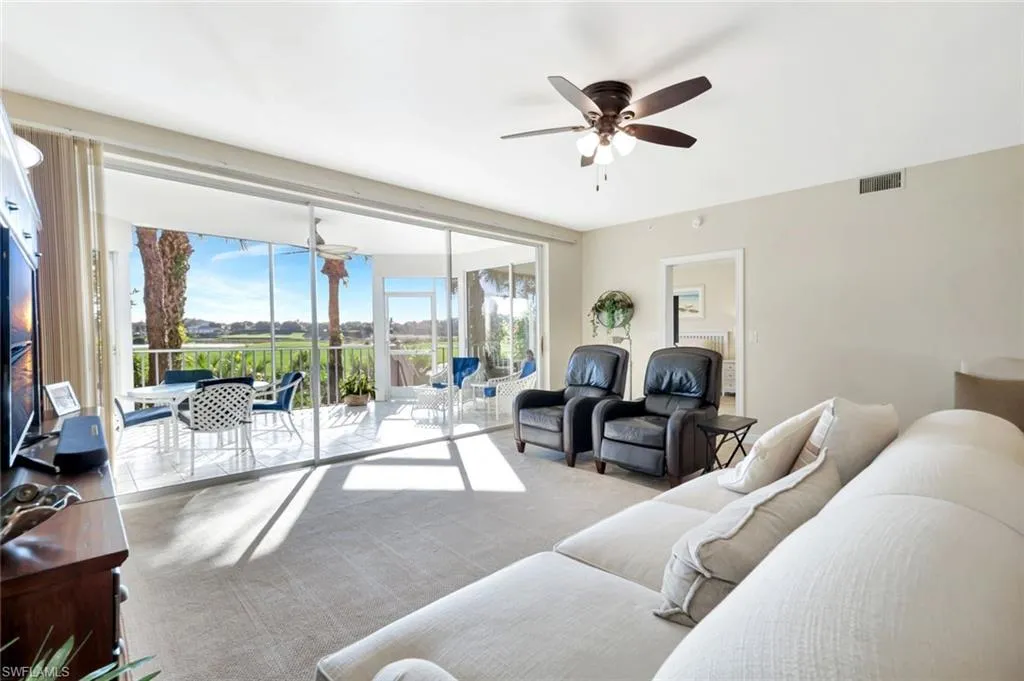 Priced to MOVE! Yes to a Lovely Golf Course and Water View! Yes, to 3 Bedroom, 2 Full Bathrooms, 2 Car Garage, FULLY Renovated and Fully Furnished TURNKEY. (small exclusion list) Third Bedroom has A Queen Murphy Pull Down. Functions as An Office/Den or Bedroom. NO CARPET! All Tile, This Unit Owner has no pets. Immaculate Inside! Electronics Stay, Quartz Counters In Beach Sand Hue. Extra Storage. Inside Laundry Room with Full Size Washer & Dryer.BE SURE TO ENJOY THE VIDEO OF THIS MOST DESIRABLE LISTING! Bonita Bay Offers Miles of Greenspace Full of Paths for Bikes, Joggers/Walkers, Your Own Private Beach, Including Trolley Service at the End of Your Street! Tennis, Bocce, Canoe Or Kayak, Marina, Restaurant, 5 Championship Golf courses, 4 Waterfront Parks Including Beach Park, and a Full Year Round Social Calendar! Fantastic Location, Easy Lock & Leave, Fly In Fly Out!