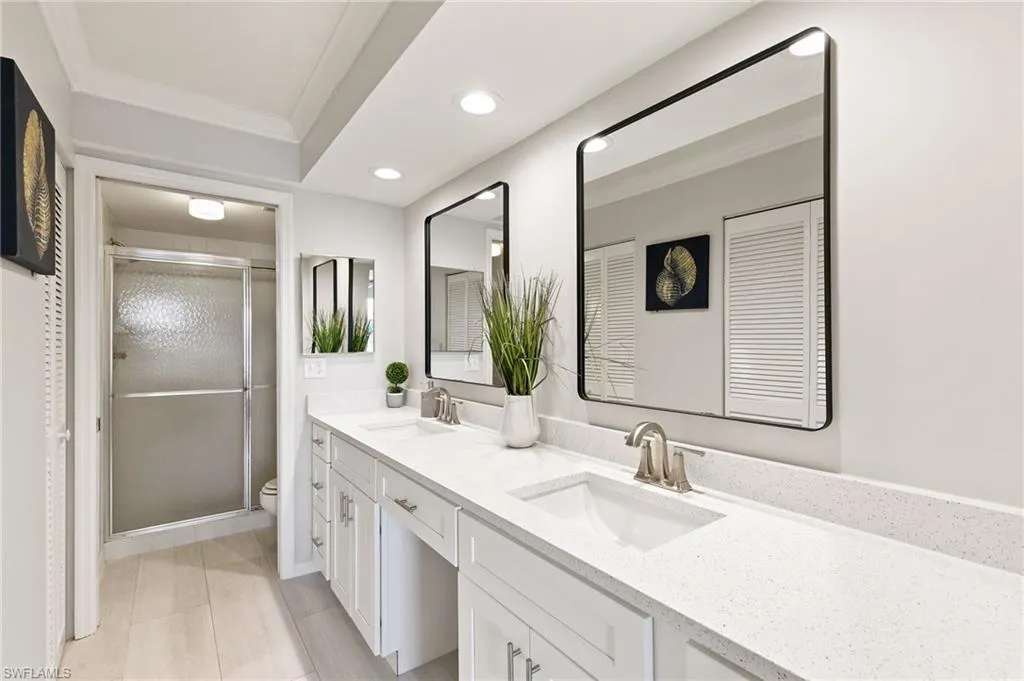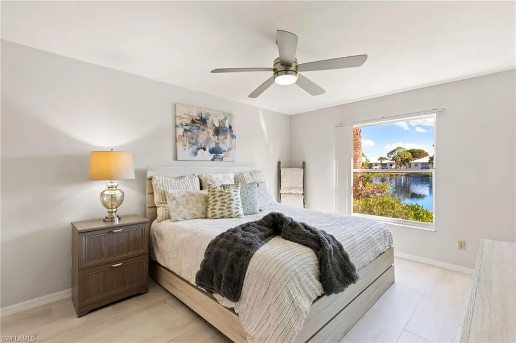 Turnkey Coastal Living Near the Beach & Mercato! Experience the perfect blend of easy beachside living and low-maintenance luxury in this beautifully updated, furnished first-floor condo in the highly sought-after Pavilion Club gated community. Offering a tranquil lake view and an exceptional North Naples location, this residence places you just minutes from the Gulf’s sandy shores, Mercato’s vibrant shopping and dining scene, and the area’s most beloved attractions. Step inside to a bright and welcoming interior enhanced by new flooring, crown molding, fresh neutral paint, and an abundance of natural light streaming through large windows. The updated kitchen features granite countertops, a tile backsplash, newer appliances, and modern lighting—an ideal setting for preparing meals before heading out for a day by the water. The spacious front flex room, complete with built-in cabinetry and a large window, can serve as a den, dining area, or cozy reading nook. The main living area opens seamlessly to a private, air-conditioned glass-enclosed lanai where you can enjoy morning coffee or evening cocktails while taking in peaceful lake views. The primary suite offers a relaxing retreat with a generous walk-in closet, ensuite bath with double sinks, and tiled walk-in shower. A comfortable guest bedroom with ample storage and a nearby bath with a tub and shower provides inviting accommodations for visitors. A separate laundry room adds everyday practicality to this thoughtful floor plan. Pavilion Club residents enjoy a heated pool, clubhouse, BBQ and picnic area, and biking and jogging paths, creating a welcoming atmosphere for those seeking community and connection. Best of all, this location allows you to embrace the true Florida lifestyle—where you can bike or walk to Vanderbilt Beach, the Ritz-Carlton, Mercato, local cafés, and boutiques – plus a short drive to Fifth Ave dining and shopping, and other local attractions. Whether you’re searching for a year-round residence or a seasonal getaway, this home delivers turnkey convenience, modern comfort, and an enviable Naples address that captures the essence of effortless coastal living.