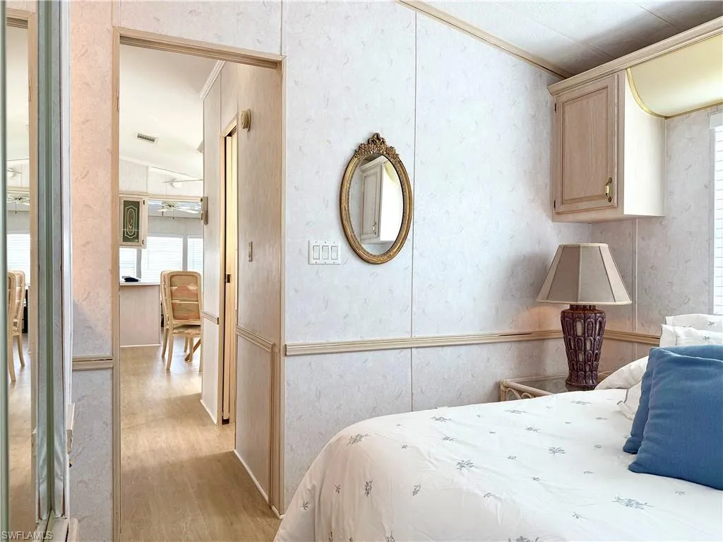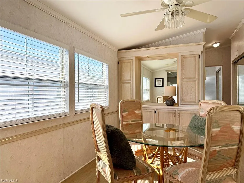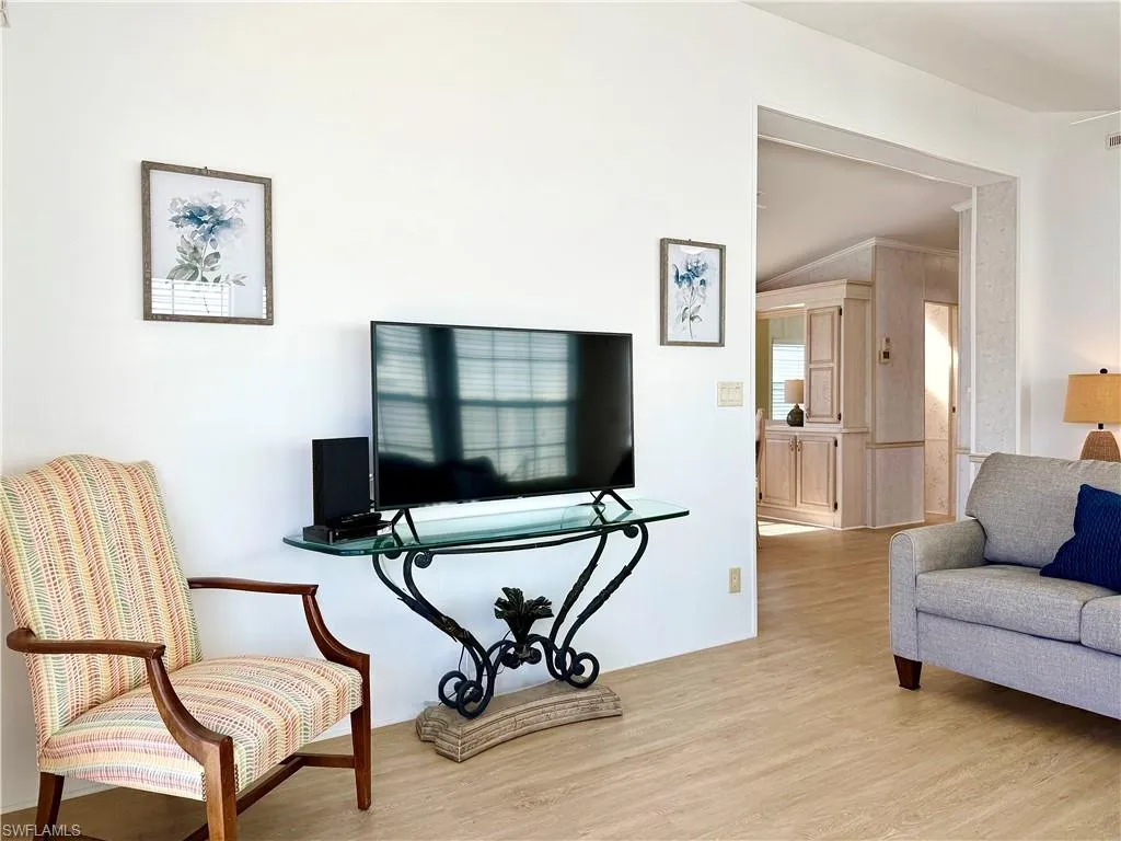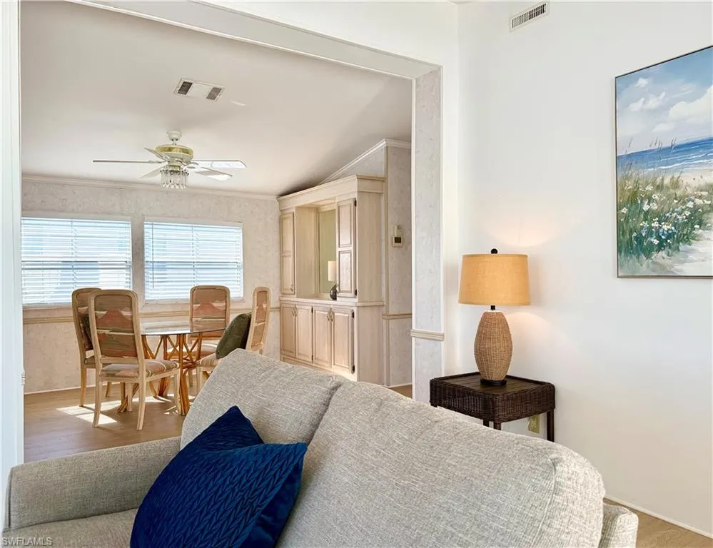 Outstanding Location within the Imperial Wilderness Condominium Association of Naples, FL— diagonal from the second pool & spa area and on the water! This beautifully maintained, true 2Br/2Ba home features LAND that YOU OWN and spectacular water views from the spacious living room and eat-in kitchen area. The home offers high ceilings, updated plumbing, laminate flooring throughout, and is being sold furnished. Both bedrooms are roomy; the owner’s en suite features 2 closets and a large bathroom area with a generously sized shower. The outside boasts vinyl siding, a metal roof, composite plank steps, and a rear patio area. The location of IWCA is ideal! It is a gated 55+ community positioned minutes from numerous restaurants and stores. Plus, there is easy highway and airport access (45-minute drive to Ft. Myers via I75). Beaches are also close– 11 miles to the Naples beaches and 8 miles to Marco Island beaches. Of extreme importance, IWCA was never flooded and has not been affected by any recent hurricanes. This home is ideal for seasonal, full-time, or rental purposes. The HOA fee of $898. per quarter covers many of your needs: water, lawn care, basic cable, trash/recycling, and community amenities. Plus, there are numerous community amenities: 2 pools with spas, a nature trail, pickleball, tennis, horseshoes, bocce, pétanque, memorial garden trail, the ability to drive an electric golf cart within the park, and 2 dog parks (there is a 1 pet, 40lb. max., restriction). On top of everything, IWCA offers an extremely active social events calendar (daily events).