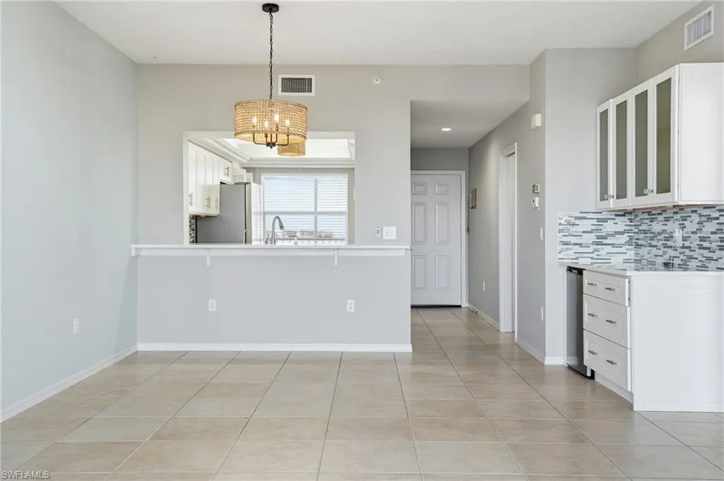 Welcome to your island sanctuary at Hibiscus Pointe—where calming trade winds, sun-washed interiors, and tastefully modernized finishes come together to create the perfect Fort Myers Beach retreat. This beautifully updated top-floor Penthouse offers 2 beds, 2 baths, and an open-concept layout designed to embrace the serene Gulf breezes that drift effortlessly through the home. With no neighbors above, this residence provides added privacy and a peaceful, elevated vantage point. Step into a light-filled living space featuring designer lighting, modern fixtures, and an updated kitchen with an adjacent bar—ideal for entertaining or unwinding after a day at the beach. The expansive screened lanai runs the full length of the unit, complete with ceiling fans to enhance the refreshing salt-laced trade winds that define coastal living here. The primary suite is a true retreat, boasting private lanai access, a beautifully remodeled ensuite bath with quartz countertops, dual sinks, a frameless glass shower, and a spacious walk-in closet. A conveniently located in-unit new washer and dryer adds everyday ease. The generously sized guest bedroom and updated guest bath ensure comfort for visitors or extended stays. Just a stone’s throw from the beach, this penthouse is ideal as a seasonal escape, a high-demand addition to your rental portfolio, or your forever island hideaway. Hibiscus Pointe residents enjoy an impressive array of amenities, including a sparkling community pool, clubhouse, tennis & pickleball courts, deeded fishing pier, deeded beach access, golf putting green & driving cage, bocce ball, scenic walking paths, and more. This is island living at its most relaxing—calming, breezy, and beautifully updated. Welcome home.