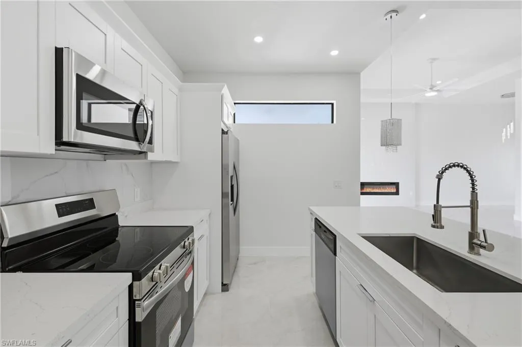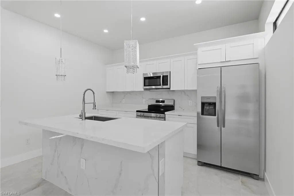 Located in a prime central Cape Coral location, this residence blends elegance, comfort, and a unique connection to the coastal lifestyle. Featuring a canal view, the home offers 4 bedrooms and 3 bathrooms, complemented by exquisite finishes, including a contemporary kitchen with marble surfaces designed for both everyday living and entertaining.