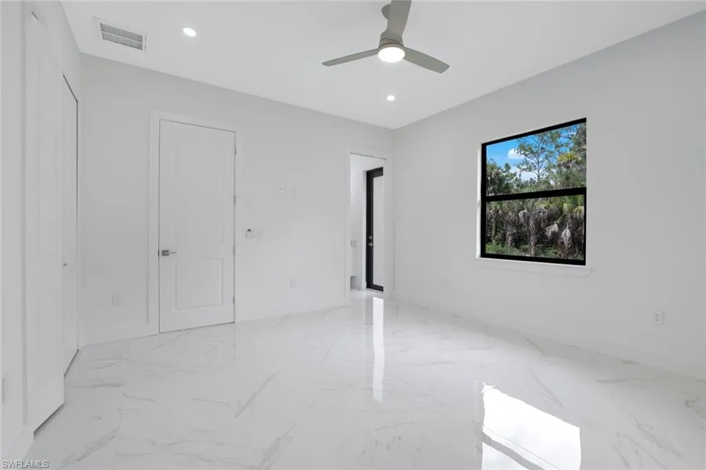 Located in a prime section of Golden Gate Estates near the highly anticipated Vanderbilt Beach Road extension, this brand-new luxury home offers exceptional convenience, privacy, and value. Designed for large families and effortless everyday living, the residence features an accommodating, open-concept floorplan that flows into an elegant kitchen showcasing 2-tier custom cabinetry and premium designer finishes. A very spacious lanai overlooks a peaceful wooded view, providing the perfect setting for tranquil mornings, entertaining, and future outdoor enhancements. The owner’s suite is a true sanctuary with his-and-hers closets, dual shower heads, and a relaxing soaking tub, creating a spa-level retreat at home. Thoughtful layout, refined finishes, and an unbeatable location come together to make this property a rare move-in-ready opportunity in the Estates.