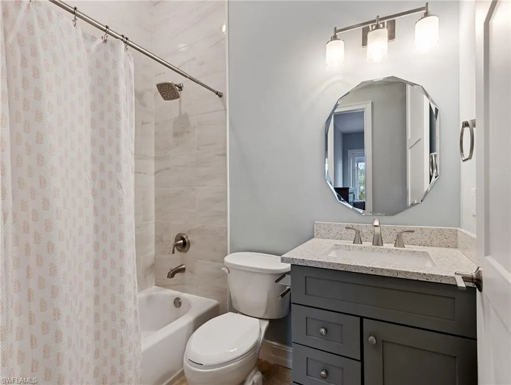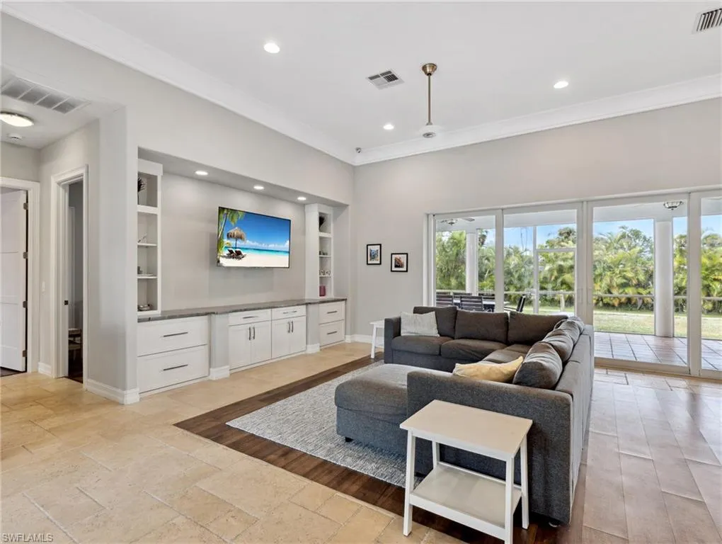 Imagine a large family home nestled in the heart of South Fort Myers – with lush landscaping, an oversized private lot, plenty of space for the kids and pets to roam free, and even space to park your RV or boat! It’s right here in Cottage Point! With over 2,900 s/f of living space, this 2-story, three car garage offers 4 bedrooms + 2 dens and 4 full baths. With an Old Florida charm, soaring 12′ ceilings create an open and bright feel the moment you enter the home. Large Travertine tile and LVP flooring flow throughout the entire home! Designer touches are abundant in this home. Crown molding, plantation shutters, an updated kitchen & pantry with Quartzite (natural stone) counter tops, new vent hood, cabinetry + designer backsplash all highlight home improvements. Large family room flows from the kitchen and will be the spot memories are made. New built-ins add to the elegance here. The Primary bedroom is very spacious and has a large sitting areas plus access to the outdoor lanai. Walk-in custom closets with Elfa shelving are a plus! The primary en-suite bath is large with double vanity sinks, plus separate walk-in shower and tub. Two additional bedrooms are split from the primary for privacy. One has its own en-suite bath. Two of the guest bathrooms are updated with new shower and sinks + plumbing. Upstairs on the second floor is a dream! Mancave, Mother-in-Law suite, or a place for the teenager makes up the 4th bedroom. Outside, you’ll discover the large expansive fenced backyard – complete with Areca Palms for privacy, and a great space to add a pool! Mechanicals of the home include whole house reverse osmosis (RO) water purification system, hot H20 tank 2024, new appliances 2022-2023, new washer and dryer 2022, 2 AC’s with UV bulbs(one AC is brand new-2025) plus impact windows for wind protection. Roof is 2019. The rear 3rd car garage driveway is great for boat or RV – with no HOA rules or regulations to contend with! Minutes to the beaches, great shopping, fine dining and entertainment, you are now HOME!