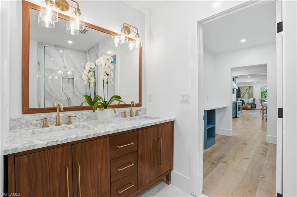 Outdoor living is a major highlight, with a full-length covered back porch, multiple seating and dining zones, and a hot tub overlooking the expansive backyard retreat. With its rare combination of privacy, location, and turnkey readiness, this home offers an exceptional lifestyle in one of Naples’ most coveted neighborhoods.