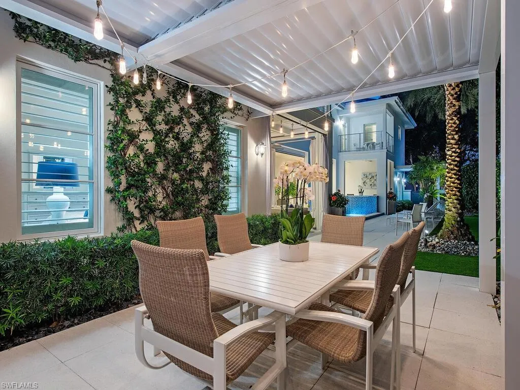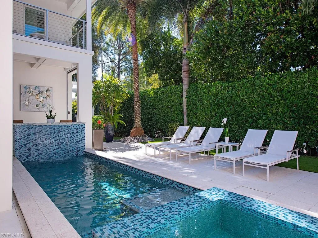 tranquil backdrop for the sun-drenched pool and spa. Moments to the beach and the best of Old Naples, this