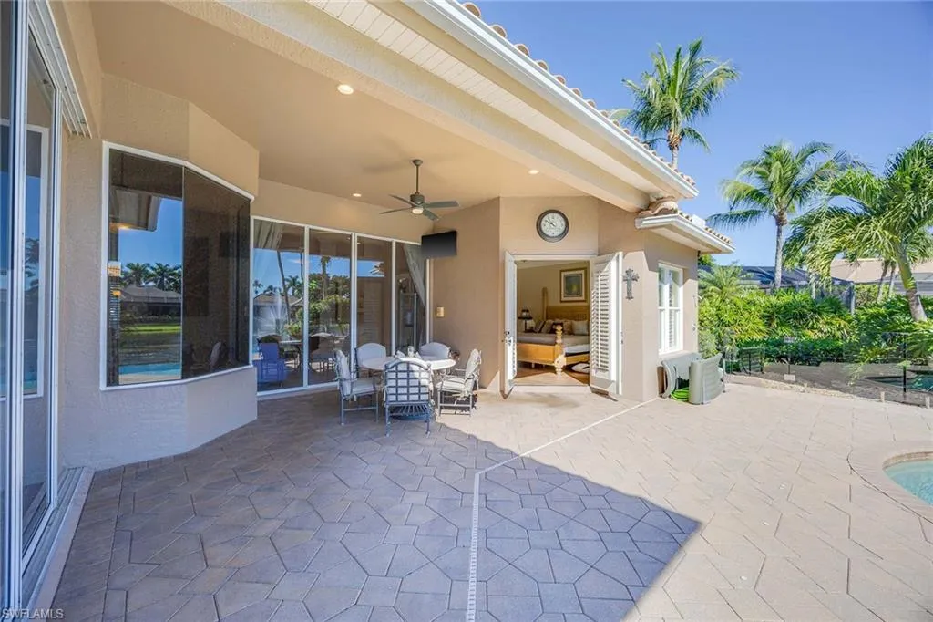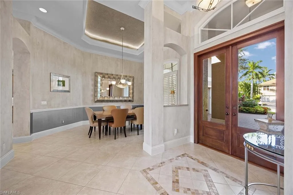 Experience exceptional lakefront living in this impeccably maintained 4 bedroom, 4 bath residence perfectly situated in Muirfield at the Marsh—one of Pelican Marsh’s most exclusive and sought-after enclaves. From the front door, an immediate “wow” moment awaits: an infinity-edge pool set behind sleek frameless glass panels, drawing your eye to a serene lake and sparkling fountain beyond. The expansive pool deck offers an unforgettable setting for entertaining friends and family, with panoramic views that make every gathering feel like a private resort experience. Offering nearly 3,700 sq. ft. of pristine living space, this home features a private office/den, custom-painted interiors, and beautifully maintained wood flooring in three bedrooms. The updated kitchen showcases modern countertops, a stylish backsplash, and bar seating ideal for casual dining or entertaining.The expansive upstairs retreat—with vaulted ceilings and exceptional storage—offers endless flexibility as a luxurious guest suite, media room, or multi-generational living space. Perfectly positioned on a quiet cul-de-sac, this property includes a newer roof (2018), epoxy-finished floors in the oversized 3-car garage with extra storage and the peace and privacy that come with living in a gated enclave of only 37 homes. Residents of Pelican Marsh enjoy world-class amenities at the Pelican Marsh Community Center, including top-tier tennis and pickleball facilities, bocce, a state-of-the-art fitness center, a library, and the beloved Courtside Restaurant. A rare offering in prime Naples—this home blends elegance, immaculate condition, and unmatched location for the ultimate Naples lifestyle.