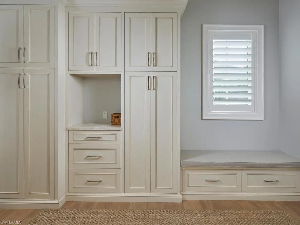 : Foyer, French Doors, Laundry Tub, Pantry, Smoke Detectors, Tray Ceiling(s), Walk-In Closet(s), Window Coverings, Coffered Ceiling(s), Built-In Cabinets, Wired for Sound, Custom Mirrors, Cathedral Ceiling(s), Bar, Fireplace, Wet Bar