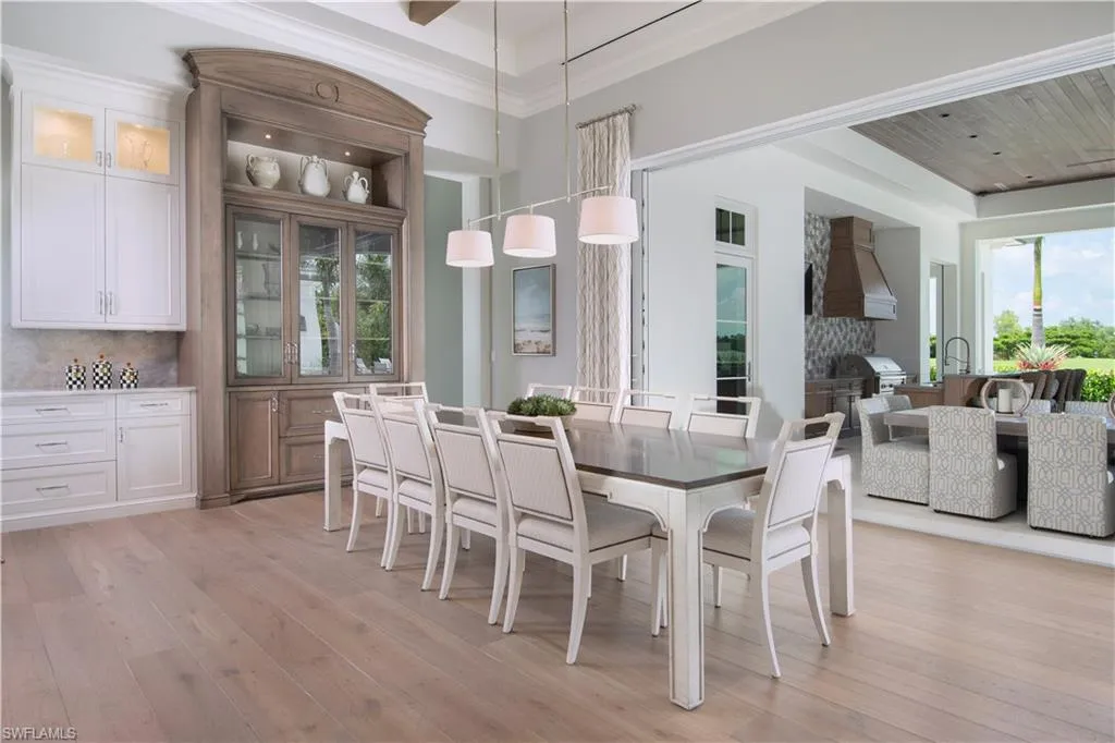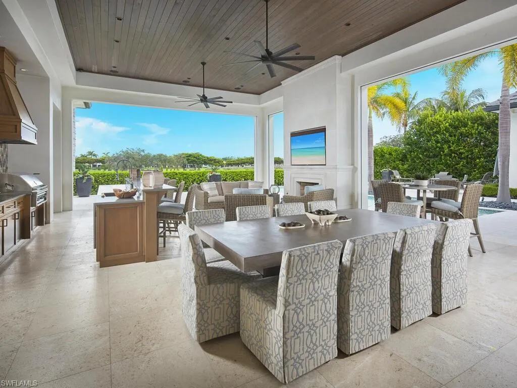 IMMEDIATE GOLF MEMBERSHIP AVAILABLE! An exceptional single-level custom estate along prestigious Prato Way in Talis Park, offering refined design, superior craftsmanship, and sweeping views across the newly renovated 14th fairway. Built to the highest standards, this residence pairs timeless finishes with a spacious and highly functional layout that blends privacy with effortless flow. Inside, a stunning gourmet kitchen anchors the home with custom cabinetry, beautifully integrated built-ins, two expansive islands with cristallo countertops, dual Sub-Zero refrigerators, two dishwashers, a private coffee bar, and a large walk-in pantry. A discreet bar/lounge, with walk-in wine room for the wine enthusiasts, creates a separate entertaining zone, while the oversized great room showcases vaulted ceilings, elegant beams, and wide-plank oak flooring throughout. Multiple sets of glass doors open to a full outdoor living area with a resort-style pool, sun shelf, covered seating areas, and a fully equipped outdoor kitchen, all overlooking lush fairway vistas. The primary suite offers a serene retreat with sophisticated millwork, abundant natural light, and a spa-inspired bath with dual showers. All rooms maintain the ease and comfort of single-level living rare for homes of this scale; all bedrooms are en-suite. Residents of Talis Park enjoy one of the most beautiful club environments in Naples, featuring a grand clubhouse with dining, fitness, and social spaces; a charming café for casual gathering; tennis, pickleball, and bocce; and a championship golf course fully redesigned for modern play. This home is an extraordinary opportunity to own a meticulously designed estate in one of Naples’ most sought-after luxury communities.