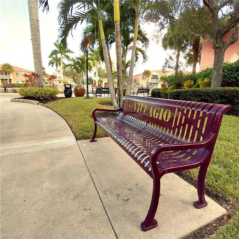 This beautifully maintained first floor home in Villagio offers one bedroom plus a den with a peaceful lake view. The setting is quiet and inviting with an easy walk to all of the community amenities. The owners have taken great care of the property. The water tank was replaced in 2021, the air conditioner was replaced in 2018, and a new walk in shower was installed in 2023. All appliances are newer, there are five ceiling fans, and the living room has an attractive newer window treatment that adds a polished finish. The open living area feels bright and relaxed and the den provides excellent flexibility for a home office or guest room. Villagio features two beautiful pools, a spa, tennis and pickleball, a fitness center, an on site cafe and sports bar, and a private movie theater that shows films in the evenings. A very important advantage is that this condominium is approved for FHA financing. Very few communities offer this, which makes this home a strong opportunity for a wider range of qualified buyers. Villagio has long been admired for its peaceful setting and friendly feel. The mature trees, lakes and walkways create a calm backdrop for daily living, and the central plaza brings neighbors together. The cafe offers simple meals and coffee, and the sports bar is a popular meeting spot for weekend games and social gatherings. The private theater is a signature feature that lets residents enjoy a movie night without leaving the community. The location adds even more appeal. Villagio is close to Coconut Point, Miromar Outlets, Gulf Coast Town Center and a wide choice of dining and entertainment. The beaches, RSW International Airport, Florida Gulf Coast University and Hertz Arena are all easy drives from the front gate. This comfortable mix of quiet surroundings and convenient access makes Villagio attractive to both full time and seasonal residents. A recent community special assessment in the amount of $1,422 was issued for improvements and maintenance. The seller has paid this amount in full, which gives the next owner added peace of mind and supports the continued quality of the community. With its well cared for interior, relaxing water view, thoughtful upgrades and rare FHA approval, this home offers outstanding value for anyone seeking a welcoming and affordable Southwest Florida residence with lasting appeal.