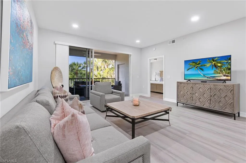 FULL GOLF MEMBERSHIP INCLUDED with this condo in one of Southwest Florida’s finest bundled golf communities. Welcome to Pelican Sound Golf and River Club in Estero, Florida. Experience resort-style living with this beautifully updated 2-bed, 2-bath condo in the desirable Island Sound neighborhood. It’s the perfect get-a-way to enjoy the sun, golf, racquet sports and boating. This fully furnished, turnkey condo is move-in-ready and features brand-new luxury vinyl plank flooring throughout. The modern kitchen is equipped with new stainless-steel appliances, beautiful quartz countertops, and detailed backsplash. The light, open layout offers comfortable living and effortless flow, while the primary suite provides a private retreat with an updated bath and generous closet space. Relax on the screened lanai and enjoy breathtaking western facing sunsets over the peaceful, private preserve—an ideal backdrop for morning coffee or evening unwinding. Pelican Sound is located just west of US41 and nestled up to the Estero River. The community really has it all…27 holes of Championship Bundled Golf, resort style pool, Estero River access with boat launch and boat storage, and a boat shuttle to Lovers Key beach. The River Club also offers complimentary paddle boards, kayaks and canoes to all residents. The racquets center features 8 clay tennis courts and 14 pickleball courts for every level racquet enthusiast. The community features multiple restaurants and bars, state-of-the art fitness center, conference center, 5 bocce courts, kids splash pool, and a very active social calendar. This is an outstanding opportunity to own a beautifully refreshed home in one of Estero’s most sought-after bundled golf communities – where golf is an included amenity. Get ready to get out of the cold and start enjoying the Florida lifestyle.