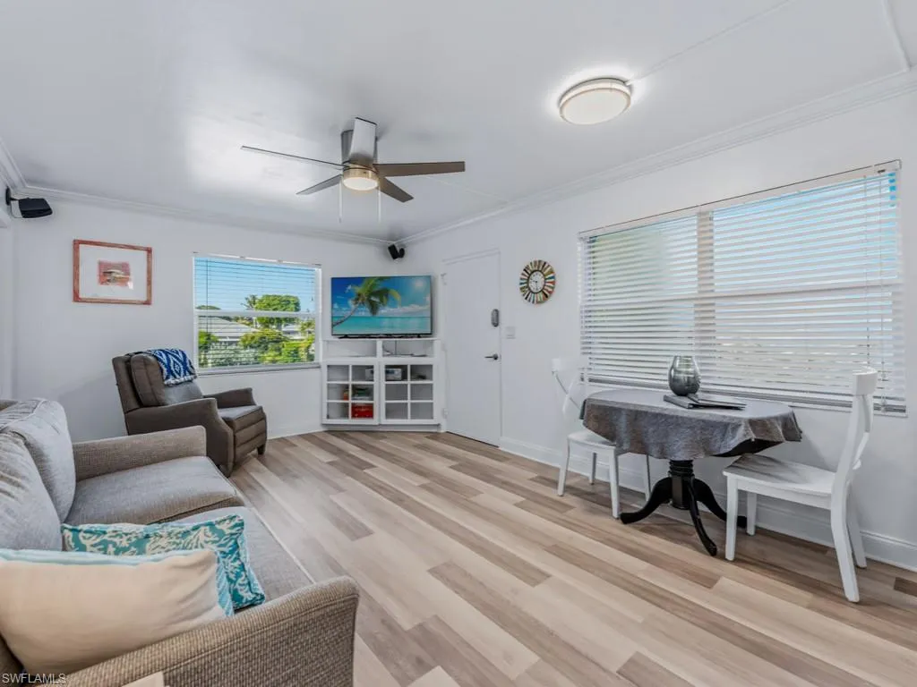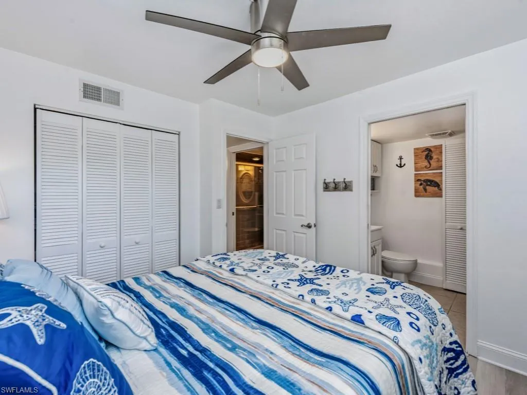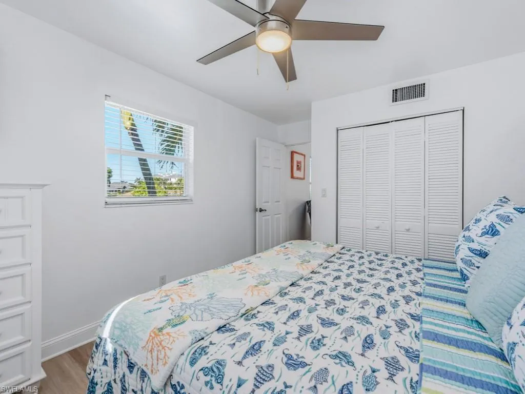 Rarely available 2 bedroom, 1 and a half bath Model Village residence located in charming Olde Marco! This highly desirable second floor, end residence boasts a light and bright interior with tasteful updates throughout. The fully equipped kitchen and in-residence laundry supply added convenience. The master suite is a private retreat with ensuite bath and the additional guest bedroom offers ample space for friends and family. The balcony provides year-round sunshine, the perfect place to relax and enjoy the gentle island breeze and fresh salt air. All impact windows and doors offer extra peace of mind. Enjoy quick, direct Gulf access within minutes from the common docks. Model Village is a low density building and offers beautiful community pool, grill, and spacious deck where you can enjoy picturesque sunsets. With a 1 night minimum rental policy, this gorgeous residence has endless rental potential. Many popular restaurants, the Shops of Olde Marco, marinas, and more are all at your fingertips. Do not hesitate to make this waterfront gem your piece of island paradise. Seller is a licensed real estate agent.
