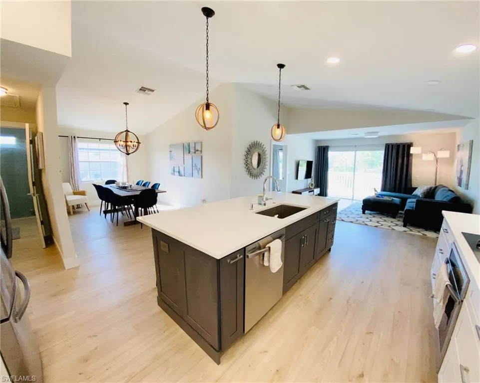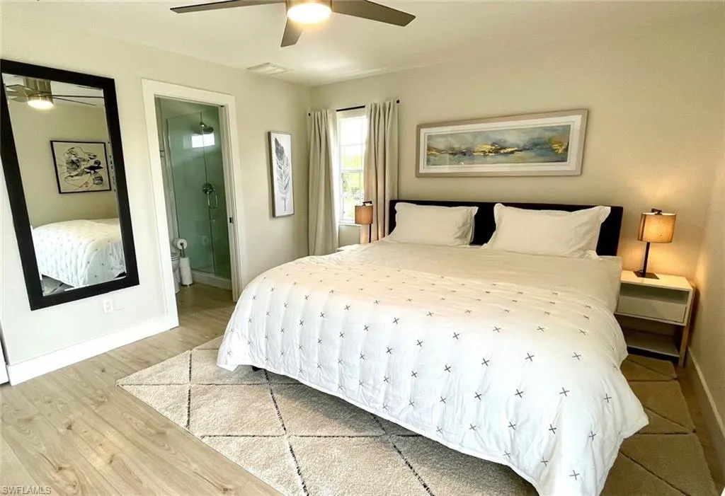 Completely renovated (2021) 2 story home with an income producing 1st floor apartment (rented) and 2nd floor main living area that can be owner occupied or rented out as well. The upstairs living area has Three (3) bedrooms and Two (2) full baths. The Master bedroom has en-suite bathroom with walk in shower, dual sinks, king size bed, modern furnishings, a walk-in closet and a 55″ tv. The Two (2) guest rooms have queen size beds and newer modern furnishings. The upstairs also features an expansive kitchen with island and breakfast bar, a formal dining area, family room, stainless steel appliances, along with vinyl flooring throughout the home and a sizeable exterior deck overlooking the spacious yard. Located on a corner lot with a great yard for outside entertaining and enjoyment; plenty of room for a pool. The enclosed Two (2) car garage is ideal for protecting your vehicles and having additional storage. Close proximity to some of Naples finest amenities including: Beautiful Vanderbilt Beach (biking or golf cart distance), Mercato, dozens of restaurants, shopping and entertainment venues, NCH Hospital and quick access to I-75.
