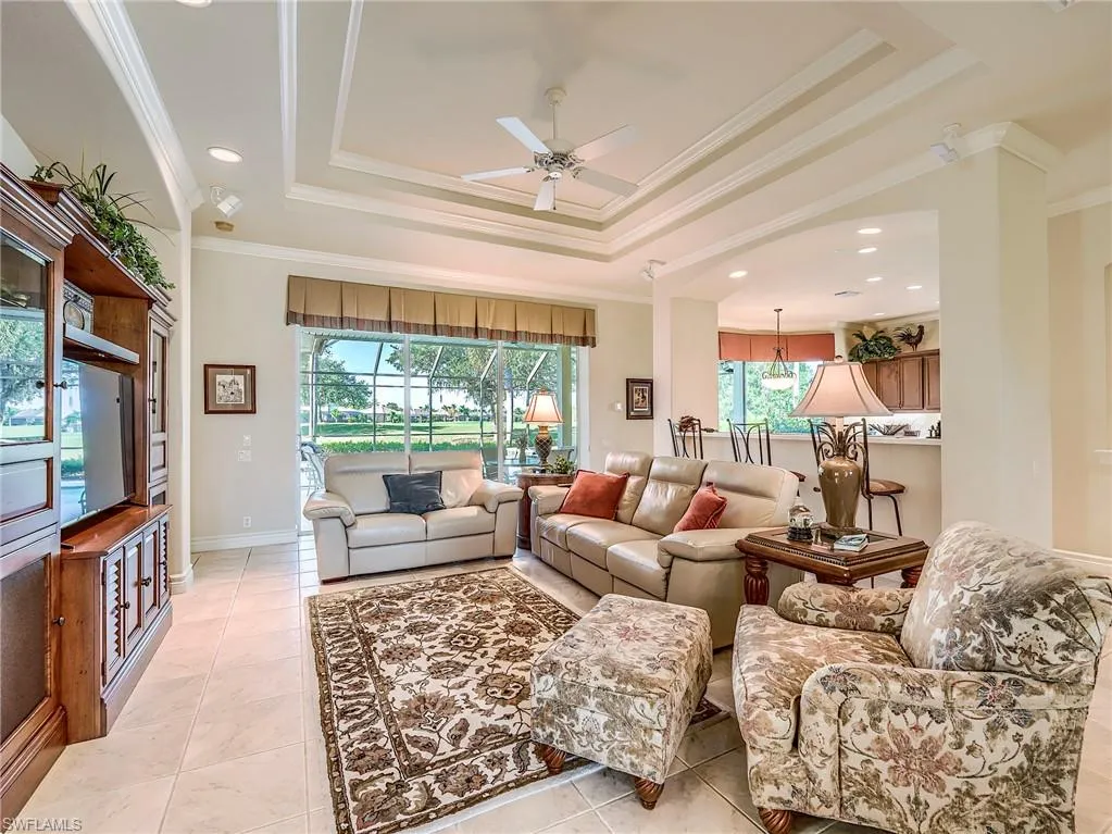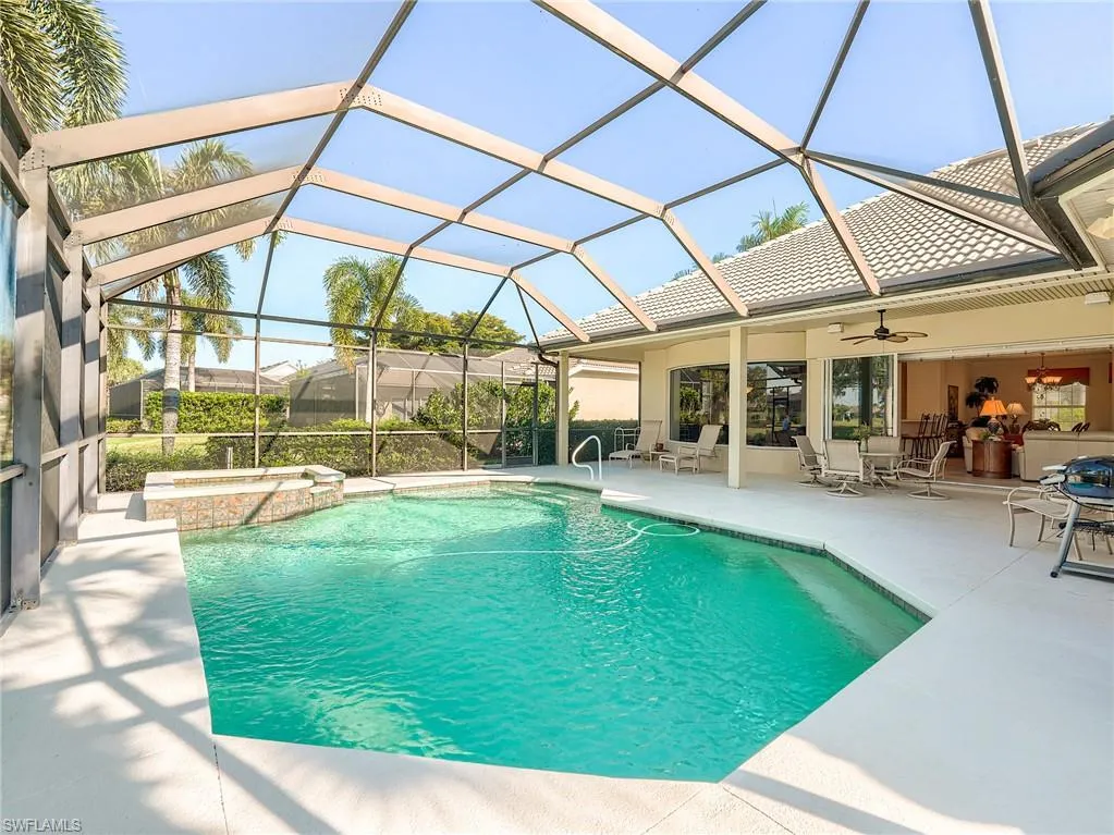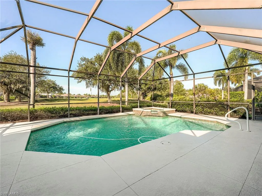 Experience luxury living in this elegant single-family home located in the highly sought-after gated golf community of Verandah. Overlooking the scenic 7th green of the Old Orange golf course, this Arthur Rutenberg Muirfield II residence blends timeless design with modern comfort. Offering 2,327 sq. ft. of beautifully designed living space, the home features 3 bedrooms plus a den, 2 full baths, and 1 half bath, ideal for both everyday living and entertaining. The open floor plan welcomes you with spacious interiors, abundant natural light, and seamless indoor-outdoor flow. The gourmet kitchen stands out with its signature mitered windows, offering panoramic views of the lanai and golf course, while the guest bedrooms are enhanced with plantation shutters for added charm and privacy. The large master suite provides a peaceful retreat with ample room to relax. Step outside to your private oasis where a sparkling pool and spa, extended lanai, and serene golf course backdrop create the perfect setting for outdoor dining, lounging, and entertaining. A side-load 2-car garage adds to the home’s curb appeal and convenience. Located within Verandah, residents enjoy access to top-tier amenities, including championship golf, tennis, pickleball, bocce, nature trails, fitness facilities, and more—all in a tranquil, beautifully maintained environment. This exceptional property combines upscale finishes, thoughtful design, and a premier location—an ideal opportunity to enjoy Florida living at its finest.