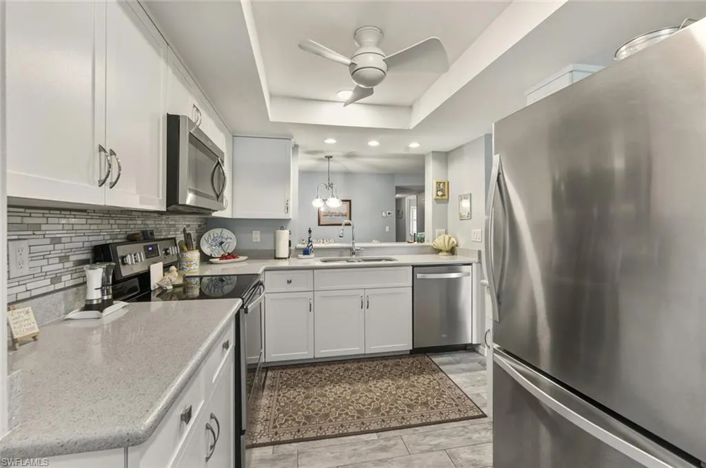 What a lovely first floor two bedroom two bathroom condo that can easily be a year round HOME, winter home, summer home, or a seasonal rental investment property! There is a detached carport included and many new amenities both in this SOCIAL MEMBERSHIP itself and in Countryside as a whole. Pickleball, tennis, bocce, book club, a recently opened renovated club house, pool cafe/bar, and a fantastic resort pool with lap lanes for the people that like to do laps often. There is an attended fitness center which you will see in the photos for this listing. Now then, back to the condo itself. There is a gray wood look tile throughout the complete unit. Kitchen has gone through an update featuring drawer pullouts, shaker cabinetry, quartz countertops, and stainless steel appliances. The windows have plantation shutters with split louvers to let in natural light on top portion while allowing privacy on the lower portion. Guest bath has a jacuzzi tub with surround subway tile, while the primary bath has a walk in shower with the surround subway as well. The buyer assumes the assessment going forward for the resort pool, outdoor dining amongst other enhancements at $293.85 per quarter until 5/1/2033.