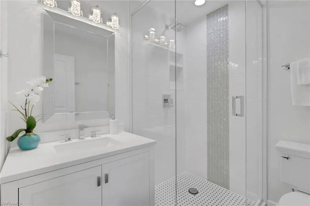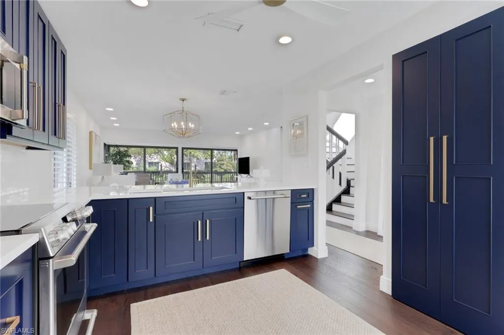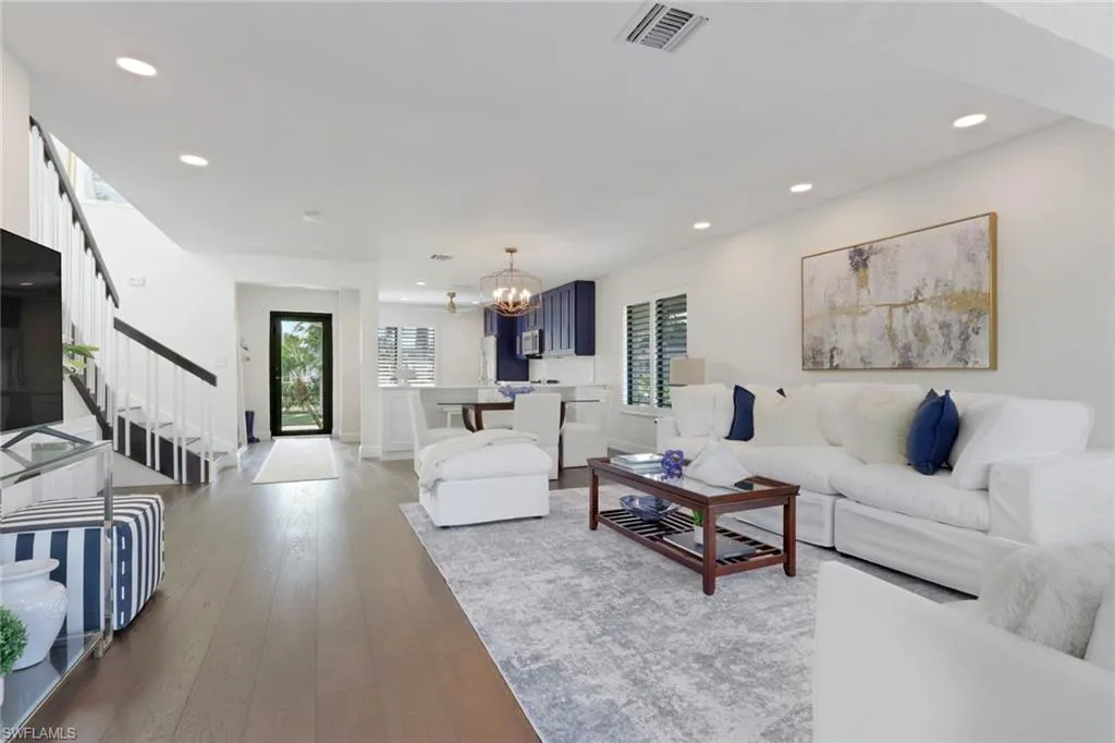 Exquisite Luxury Villa in Exclusive Olde Naples Nestled in the heart of the highly sought-after Olde Naples, this stunning luxury villa offers the ultimate Florida lifestyle, combining modern comfort with an unbeatable location. This beautifully updated 2-bedroom, 2.5-bathroom townhome offers the perfect blend of modern luxury and ideal location. Situated just 6 blocks from the pristine beaches of Naples, 3 blocks from the vibrant shops and dining on Fifth Avenue South, and only a short stroll to the scenic Cambier Park, this home places you in the heart of it all. Step inside to discover a thoughtfully remodeled interior, featuring new premium wood floors throughout. The gourmet kitchen is a standout, with custom cabinetry, sleek stainless steel appliances, a Franke designer sink, and a Grohe faucet. The seamless quartz countertops and stunning marble backsplash create a sophisticated backdrop for both cooking and entertaining. The townhome boasts spacious bedrooms, each with remodeled bathrooms that combine modern elegance with functionality. Every detail has been attended to, from solid-core interior doors to impact-resistant windows and exterior doors, ensuring both style and safety. High-end wood shutters and electric slider shades offer privacy and convenience, while a full-size stackable LG washer and dryer add practicality. Enjoy peaceful views of the serene lake from the private deck or relax in the bright, airy living spaces that seamlessly blend comfort with contemporary flair. This townhome truly has it all—an unbeatable location, luxurious upgrades, and a peaceful lakefront setting. No flooding in hurricane Ian and Milton. Whether you’re seeking a year-round residence or a seasonal retreat, this gem in Naples is a must-see!