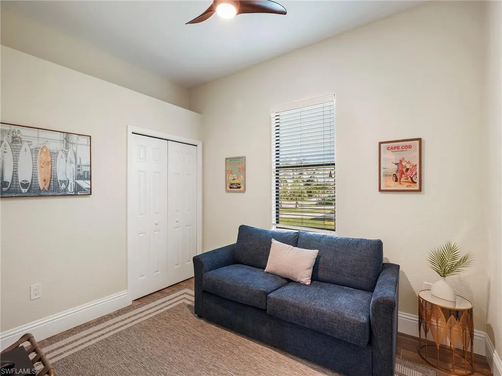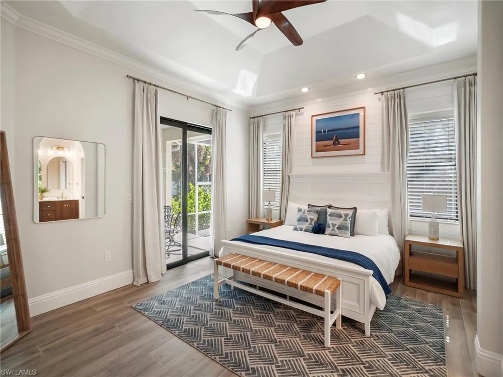 Stunning Turnkey Coastal Retreat Near Naples Bay!! This meticulously maintained, beautifully furnished, and GORGEOUSLY UPDATED 4-bedroom, 2.5-bath home offers effortless luxury living just minutes from Naples’ finest attractions. An inviting great room floor plan showcases soaring ceilings, abundant natural light through ALL-NEW IMPACT WINDOWS AND DOORS, and sophisticated touches including shiplap walls, gold designer accents, and modern plank tile flooring throughout. The gourmet kitchen impresses with quartz countertops, a sea-blue American Olean backsplash, stainless steel appliances including a wine cooler, abundant cabinetry with crown trim, and a striking navy accent island perfect for gathering. A serene primary suite features an en-suite bath with a beautifully tiled walk-in shower in an eye-catching herringbone pattern, dual vanities, elegant mirrors and fixtures and rich wood cabinetry. Outdoor living takes center stage on the screened lanai with desirable SOUTHERN REAR EXPOSURE. Here, the HEATED POOL is surrounded by lush landscaping and offers a private, tranquil setting. The home’s built-up 10′ elevation adds peace of mind and enhances its long-term value. Situated in an unbeatable Naples location, this residence is close to Bayview Park, offering 4 acres of waterfront recreation, a public boat launch, picnic pavilion, and million-dollar views of Naples Bay with easy access to the Gulf and Keewaydin Island. Boating and waterfront enthusiasts will also appreciate proximity to Hamilton Harbor Yacht Club, one of Florida’s most advanced boat storage facilities with exceptional waterfront dining. Just 5 miles from Naples Beach and 5th Avenue South, and minutes from Naples Airport, premier shopping and dining, championship golf courses, the Naples Botanical Garden, and countless coastal attractions, this home combines luxury, convenience, and the quintessential Naples lifestyle.