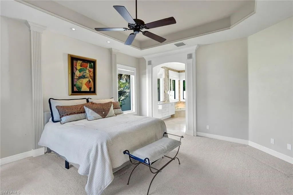 Experience this exceptional Harwick custom-built residence perfectly positioned on a spacious HALF-ACRE CORNER LOT IN THE HIGHLY DESIRABLE CREEKSIDE neighborhood of Bonita Bay. Grand double doors open to a stunning pool and spa at the heart of the home, with nearly every living space opening to this inviting outdoor retreat—perfect for relaxing or entertaining. This bright, spacious home offers 4 bedrooms+ den, 5 baths, A PRIVATE GUEST CABANA and a 3 CAR GARAGE. Each bedroom features its own en-suite bath and OVERSIZED CLOSETS. The large den/Gathering room includes a wet bar, wine cooler, custom built-ins, and desk, creating an ideal entertainment or work space. Take in TRANQUIL LAKE AND GOLF VIEWS overlooking the 8th hole of the Creekside Course, surrounded by beautiful Live Oaks, Palms, Staghorn ferns, and lush landscaping. EXPANSIVE SLIDERS AND WINDOWS fill the home with natural light and invite gentle breezes throughout the day. The kitchen offers stainless steel appliances, a wet bar, and wide-open views of the golf course. The primary suite features generous space, a sun-filled sitting area, and a luxurious bath with a sunken tub. The current owner loves the ease of the primary bath providing quick access to the private spa. Additional highlights include marble floors, an ENCLOSED SUNROOM and quiet sitting areas overlooking fountains, nature, and abundant wildlife. Major updates provide peace of mind: NEW ROOF, INTERIOR and EXTERIOR PAINT and INSTA-HOT WATER HEATER ( all less than 1 year old). Bonita Bay is Southwest Florida’s premier luxury community, offering an unmatched blend of resort-style amenities, natural beauty, and upscale living. Residents enjoy access to five championship golf courses, a state-of-the-art Sports Center with Har-Tru tennis courts, pickleball, resort pool, along with a world-class Lifestyle Center featuring advanced fitness facilities, spa, and salon services. The community’s full-service marina on the Imperial River provides direct Gulf access, wet and dry boat storage, fuel, and maintenance, complemented by the popular waterfront restaurant Backwater Jacks. Bonita Bay also offers a private Gulf-front beach club with shuttle service, lounge chairs, umbrellas, and shaded pavilions. Beautifully maintained community parks include walking trails, kayak launches, playgrounds, and picnic areas, over 12 miles of pathways wind through the community’s 2,400 acres. Recognized as an Audubon International Cooperative Sanctuary and a Blue Zones Community, Bonita Bay emphasizes wellness, environmental stewardship, and an active social lifestyle. Dining options range from casual waterfront meals to fine dining at the Club, with a full calendar of events, classes, and activities. With its combination of golf, marina access, beach amenities, nature preserves, and exceptional recreational offerings.