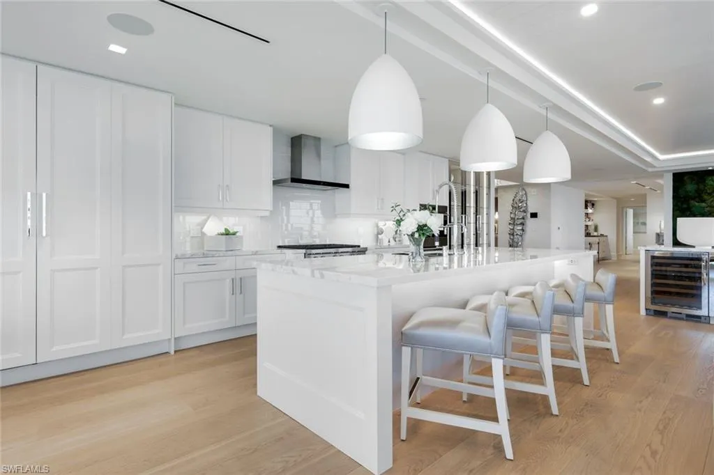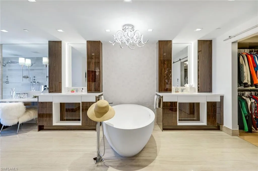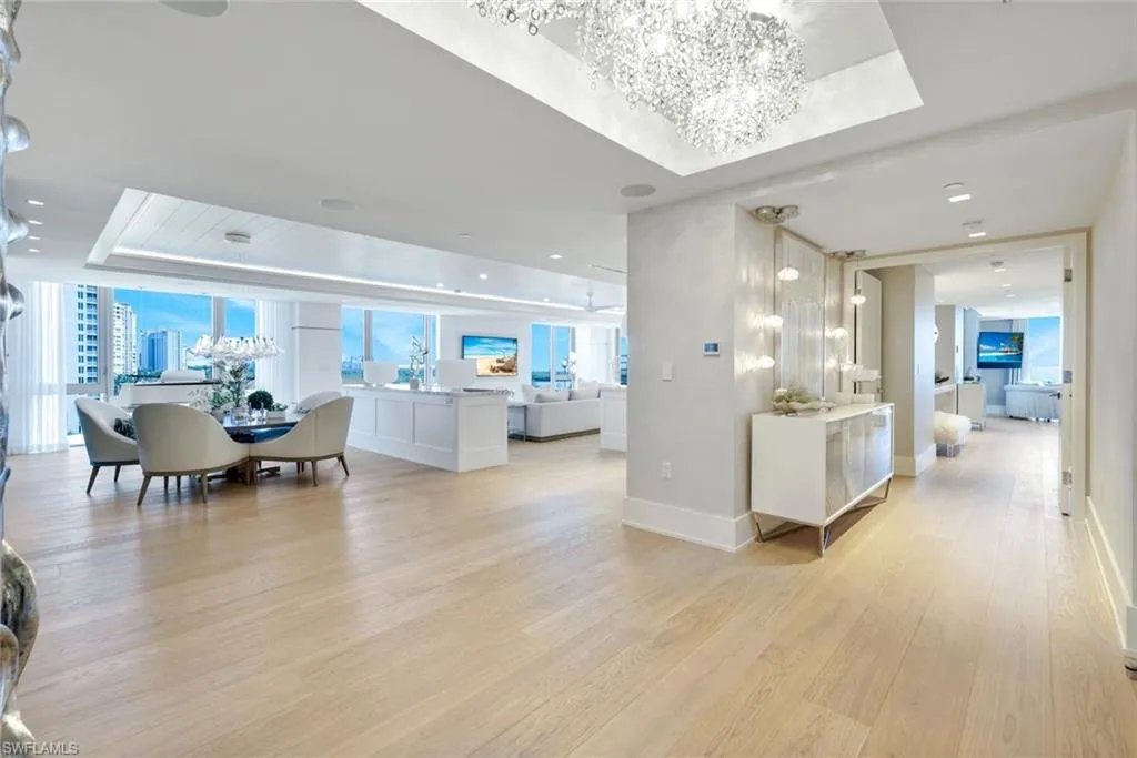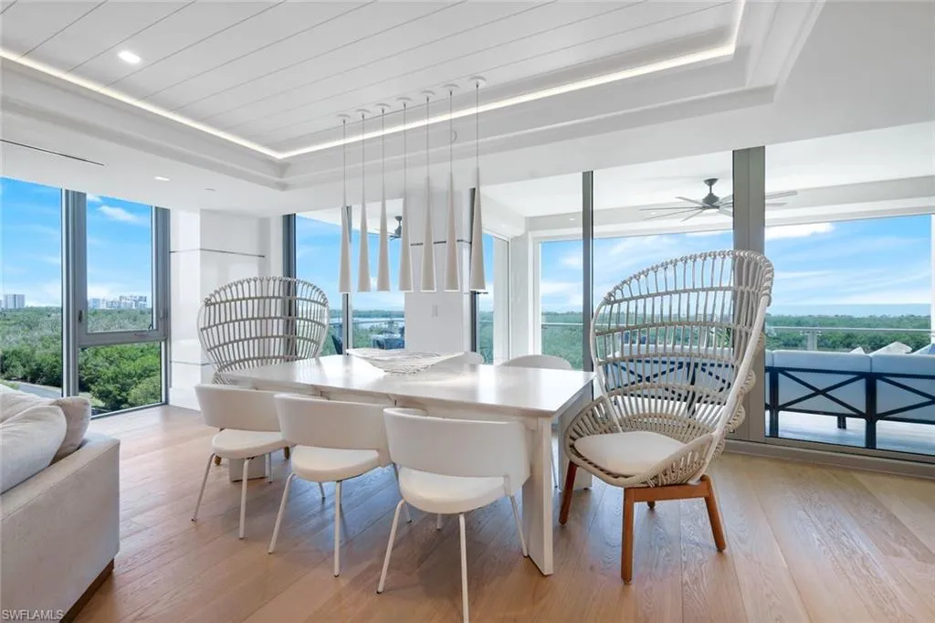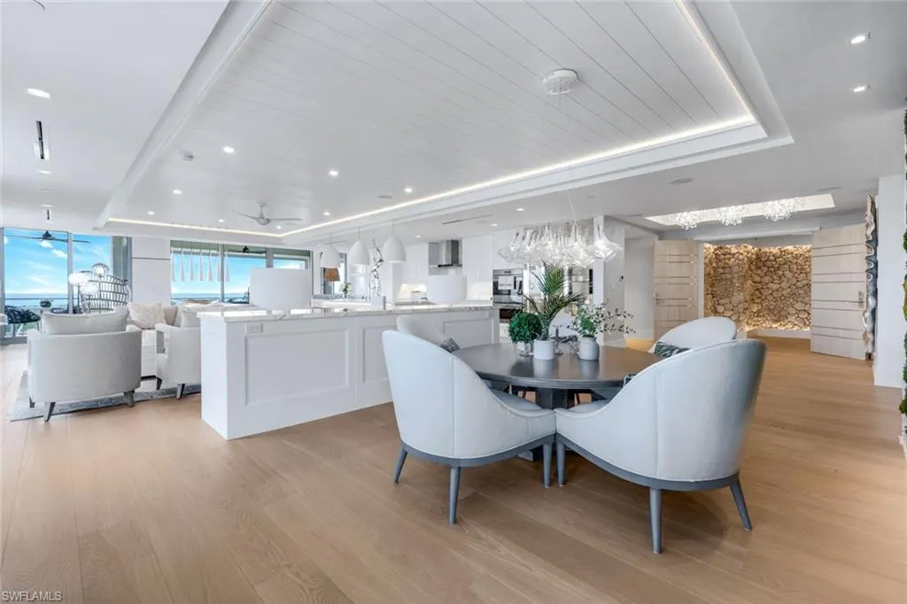 Live a lifestyle immersed in sweeping Gulf views that extend in every direction, showcased by floor-to-ceiling walls of glass enveloping this barely lived-in 6th-floor residence at Mystique—Pelican Bay’s newest luxury high-rise. This like-new residence, designed by MHK Architecture and Planning, with exquisite finishes by Build LLC, offers all the benefits of new construction without the wait. Natural light pours through every room, illuminating a gracious layout that flows seamlessly between the main living areas and the balcony, with unobstructed views. Masterfully finished, the residence pairs clean modern lines, timeless architectural details, and distinctive accents like a coral stone rock wall feature in the entry, and live moss-scaped dining room wall. Designed for both everyday comfort and stylish entertaining, the interiors feature well-proportioned living spaces and curated, high-end finishes. The kitchen is a showpiece, with custom cabinetry, premium appliances, a large island, and built-in banquette seating with a view. The primary suite offers a private sanctuary with a spa-like bath featuring a shower with Gulf views, an oversized soaking tub, and a custom-designed walk-in closet. A serene writing nook adds a personal touch. The spacious private office with custom built-ins provides versatility as a den or media room. Each guest suite includes an en-suite bath, including a charming bunk room designed to sleep six—ideal for visiting friends or family. Every space has been carefully planned to balance beauty and functionality, with timeless finishes and modern comforts. Life at Mystique offers exclusive access to Pelican Bay’s premier amenities. Enjoy a private stretch of beach complete with dedicated chair service and a resident-only beachfront restaurant. Mystique’s location places you just steps from Tram 6, making beach days effortless. Onsite, residents can unwind in the resort-style pool and spa, stay active in the cutting-edge fitness center with wellness-focused programs, or catch a film in the private theater. A 24/7 Front Desk/Concierge Service/Security with an impeccable staff who truly attends to every resident’s unique needs and two coveted upper-level parking spaces adds to an everyday lifestyle of convenience.