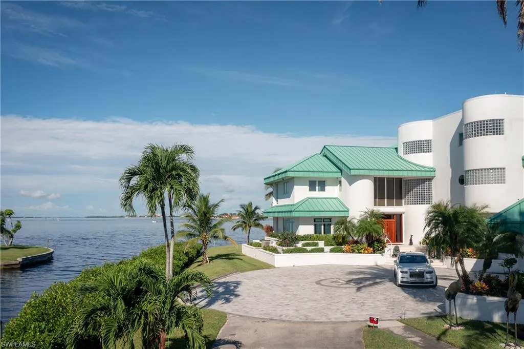 Hidden from view behind mangrove-lined shores yet only moments from the Gulf of Mexico and SW Florida International Airport, this estate is known to every mariner navigating the Intracoastal toward Fort Myers — the iconic white mansion at the bend of the waterway.