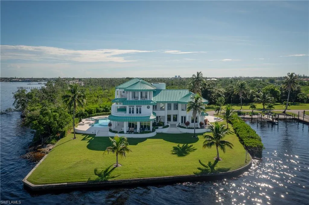 An irreplaceable private waterfront compound of rare pedigree — the only estate in Southwest Florida boasting its own grandfathered-in Super Yacht Marina, capable of accommodating vessels exceeding 150 feet directly on-site. This 5.73-acre peninsula sanctuary is a landmark of distinction, embracing more than 1,000 feet of shoreline with sweeping, cinematic 9-mile vistas stretching from the skyline of Fort Myers to the luminous sunsets over Sanibel.