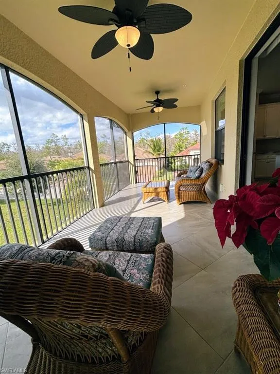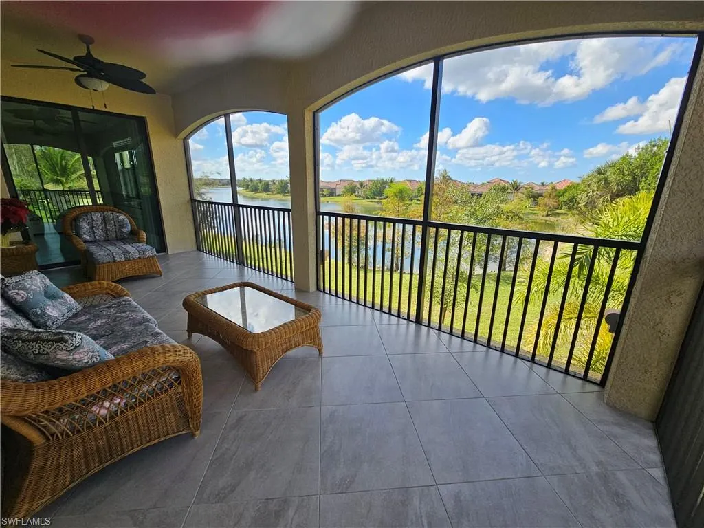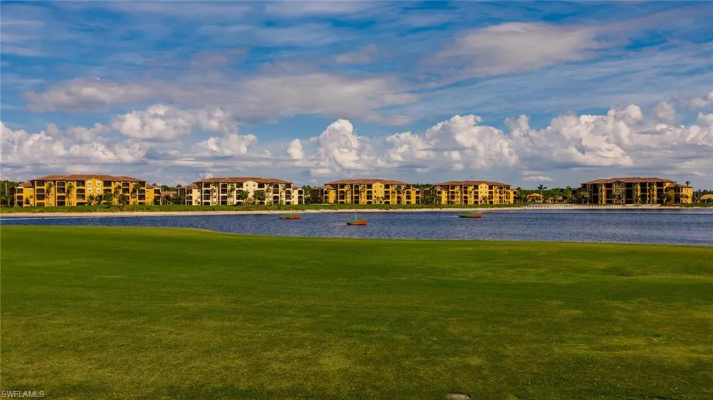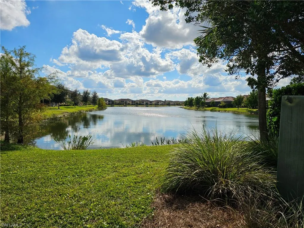 This is the one you’ve been waiting for!!! Absolutely IMMACULATE upper level coach home located at the very end of the street with fantastic westerly SUNSET VIEWS overlooking the lake! Pride of ownership shows throughout this spectacular home. From the moment you walk in to the grand staircase with fresh high end carpeting, you know you are in for a treat. As you ascend the stairs into the great room, you are greeted by abounding light and a spacious open floor plan with a HUGE island, walk-in pantry, two closets, and GORGEOUS CUSTOM Samsung refrigerator and dishwasher which do convey with the home. Then you cannot help but be captivated by the views from your expansive 275 square foot LANAI which is accessible from both the living room and the primary suite. As you enter the primary suite, you will notice the perfectly matched tile which continues throughout the entire upper living space, giving great continuity throughout this home. The suite contains not one, but TWO of the best walk in closets you’ve seen in any home. Then there is the primary bath…WOW…the GIANT shower, not just two sinks, but two separate vanities with tons of storage and separate water closet complete this private oasis. Then across the great room you will find the “GUEST WING” containing a full bath, two oversized tiled bedrooms with walk in closets, and a laundry room with a new LG washer and a higher efficiency HVAC unit installed in 2025. These homeowners did not forget the 3 CAR tandem garage in their need for clean! It has been finished with custom turquoise and black epoxy, and the fridge is included! This home includes the social membership to all of Bonita National’s fabulous amenities including: 4 swimming pools, 2 restaurants, state of the art gym, pilates studio, spa, a very active TENNIS program with pro shop, off season golf privileges, and coming soon…PICKLEBALL and BOCCE BALL. Don’t delay, schedule your private showing today so you can join us in this amazing active community where lifelong friendships are made!