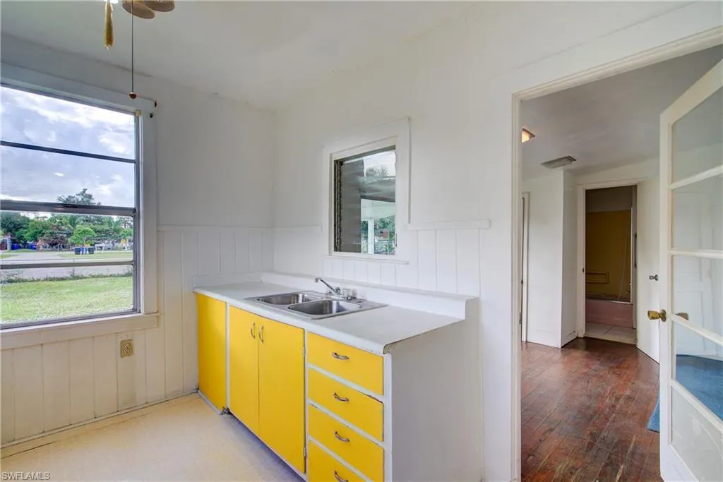 This older home sits on an oversized lot rarely found in this neighborhood, offering excellent potential for a full remodel or reconfiguration. The property features an old-fashioned front porch, original wood floors, multiple outdoor sitting areas—including a spacious back lanai—and a large detached 2-car shed/garage.