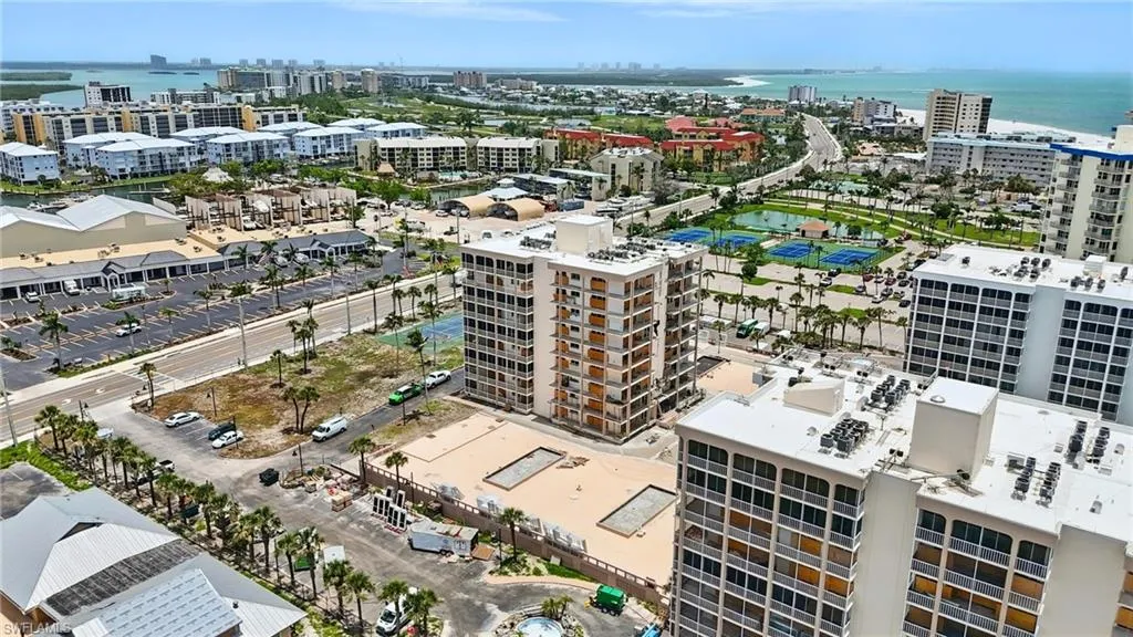 Soaring above the shoreline on the coveted south end of Fort Myers Beach, this impeccably remodeled penthouse corner unit blends modern luxury with serene island charm. Ideal for your rental portfolio, a seasonal getaway, or a forever island retreat, this penthouse pairs unmatched views with effortless, fully renovated living. Walls of windows wrap the residence in sunlight, while panoramic Gulf and Bay views create a breathtaking backdrop from every angle. Fully renovated throughout—with a sprawling kitchen and island, beautifully updated baths, new wood-style tile flooring, and refined finishes—this residence offers a turnkey retreat designed for comfort and style. Multiple balconies extend the living space outdoors, perfect for savoring morning breezes or unwinding with sunset colors dancing across the water. Everyday convenience shines with an in-unit washer/dryer, abundant storage, and a premium assigned garage space, plus a dedicated storage unit for added flexibility. Updated lanai sliders seamlessly expand the interior footprint to enjoy the indoor/outdoor living. Creciente is undergoing a stunning transformation featuring brand-new screened patios, modern railings, refreshed flooring, and newly updated amenities. Residents can enjoy a resort-style pool, redesigned fitness center, new saunas, and a revitalized social lounge with library and billiards. Located just steps from beach access and across from Santini Plaza’s dining, shopping, and entertainment—and within easy reach of Bonita Springs, Naples, and RSW Airport—this is a rare opportunity to own a top-floor coastal sanctuary.