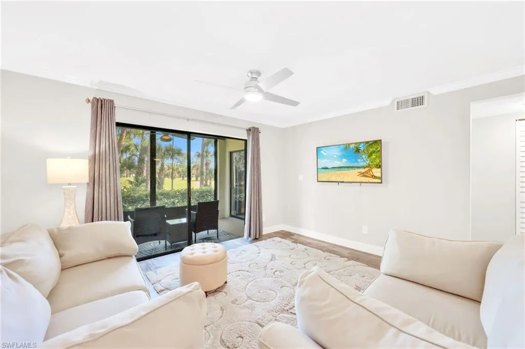 GOLFERS DREAM!!! Adorable 2 bedroom, 2 bath condo in Foxfire Golf and Country Club. Private and peaceful screened lanai with serene long golf course and lake views. Updated kitchen with granite counter tops, stainless steel Whirlpool appliances, built-in microwave, cooktop stove and crown molding throughout. Nice granite counters in bathrooms. Unit is across from pool and spa. There are two pools for this community plus private tennis court for Fox Glen residents and guests. Ownership of this Condo INCLUDES GOLF membership of the Foxfire 27-hole Arthur Hills Designed Course, including beautiful renovated clubhouse with huge fitness center, library, pro shop, full service dining room, grill room, driving range, putting green, 3 har-tru tennis courts and lap pool. 4 miles to downtown 5th Ave. shopping, dining, art galleries, theaters and fabulous Gulf white sandy beaches. CARPORT located right in front.