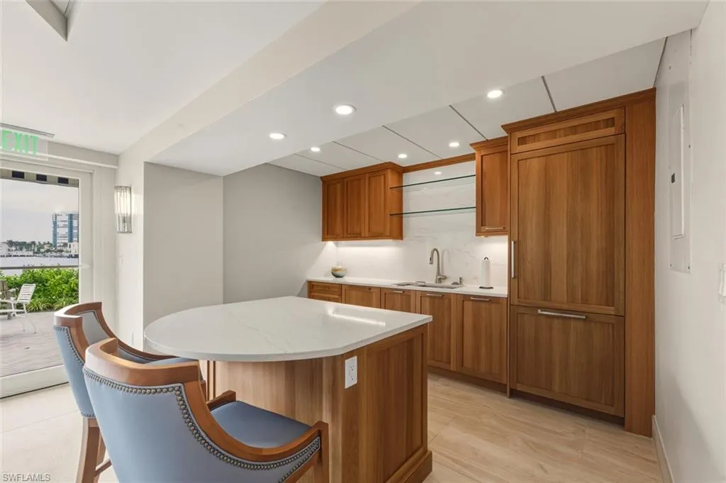Desirable Condo situated adjacent to Venetian Village Shops and Restaurants with picturesque views of Venetian Bay. As you enter the Condo,you are greeted with beautiful Renovations throughout. Just some of the updates include a completely renovated kitchen with Wolf and Sub Zero appliances with additional refrigerator drawers.The updates also include a 3rd B/R Office. The Unit also has both Impact Doors and Windows throughout as well as Hurricane Shutters. Electric Shades on the Lanai and California Shutters on the windows. ATankless water system and new Water Softrner have also been installed. A deeded Boat Slip with Electric and water that will accommodate a 32′ boat. Residents of Pelican Point West have the privilege of joining a Private Beach Park just down the street, This unit is truly spectacular.
