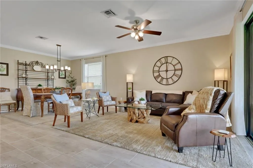 Welcome to 12952 Broomfield Lane, a beautifully upgraded Trevi floorplan located in the highly sought-after, gated community of Hampton Park at Gateway. This spacious 4-bedroom, 3-bath home has been meticulously maintained and enhanced with high-quality improvements throughout. The exterior features a front screen entry, gutters around the entire home, and fresh interior paint, creating a bright and welcoming atmosphere. Inside, the kitchen has been elevated with a tiled backsplash, a wainscot-paneled island, and an upgraded GE Profile refrigerator and dishwasher, along with an upgraded disposal. The home also includes designer lighting, chandeliers, upgraded ceiling fans, fixed glass shower panels in the guest bathrooms, and solid maple California Closets in both the primary and guest rooms. Additional upgrades include vinyl shelving in the garage and roll-down privacy screens on the lanai, offering extra comfort and functionality. This home sits High and Dry in a non–flood zone, meaning flood insurance is not required, and you simply won’t find a better-priced Trevi 4-bedroom, 3-bath home in the area.