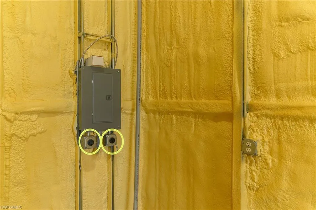 The massive 30’x60’ steel building (2023) sits on a 6″ concrete slab, fully foam-insulated with 18’ interior height, 3 overhead doors (14’x14’, two 10’x10’), two swing doors, and its own 200 Amp. 220 electrical panel with 30 & 50 amp service—ideal for RV storage, car collectors, or a workshop.