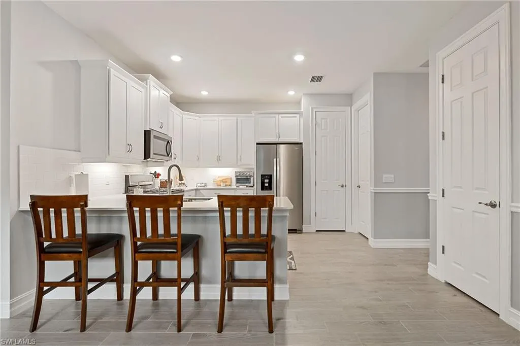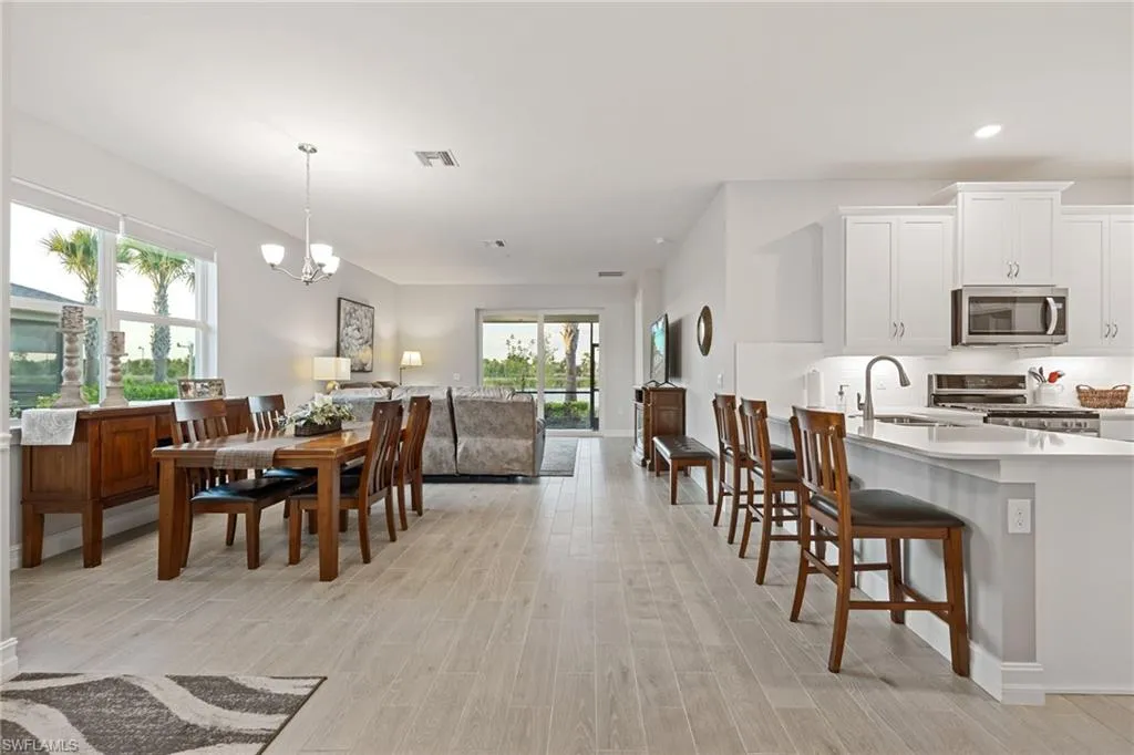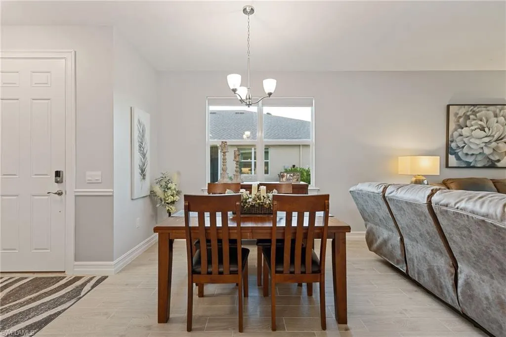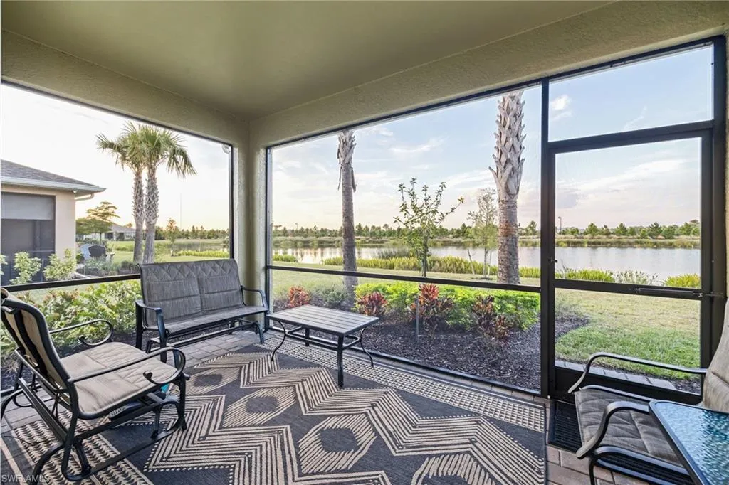 Like-new 2024 Carrington model villa featuring 2 bedrooms, 2 baths, plus a versatile den, offered fully furnished and move-in ready. Gently lived in and situated on an oversized lot with tranquil pond views, this home is loaded with upgrades and thoughtful finishes throughout. Enjoy wood plank tile flooring throughout, custom two-tone paint with elegant chair rail detailing, and an abundance of added cabinetry for enhanced storage. The kitchen impresses with quartz countertops, stylish backsplash, stainless steel gas appliances, and a tankless hot water heater for efficiency and convenience. Impact windows and doors provide peace of mind, while the spacious screened lanai offers the perfect setting to unwind while overlooking the water. Residents of The Preserve enjoy their own private community pool and bocce court just steps away. Located within **Babcock Ranch~America’s first solar-powered town~**you’ll also have access to Founder’s Square, community events, dining, shopping, and a full calendar of activities for all ages. This low-maintenance villa is the ideal blend of comfort, style, and sustainability is ready for its new owner to enjoy the Southwest Florida lifestyle.
