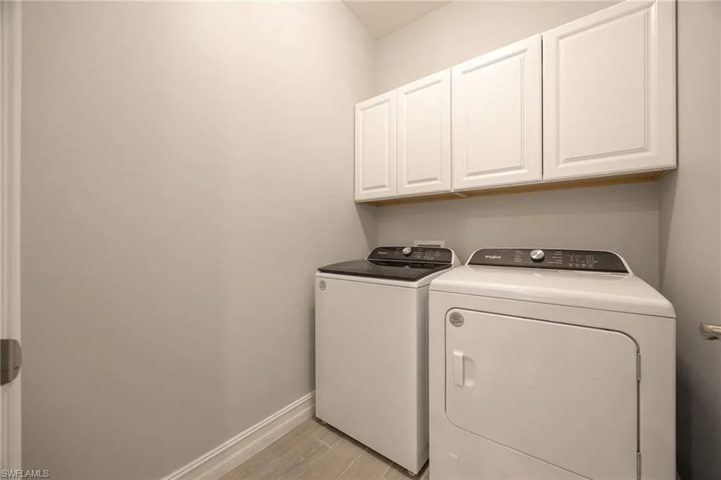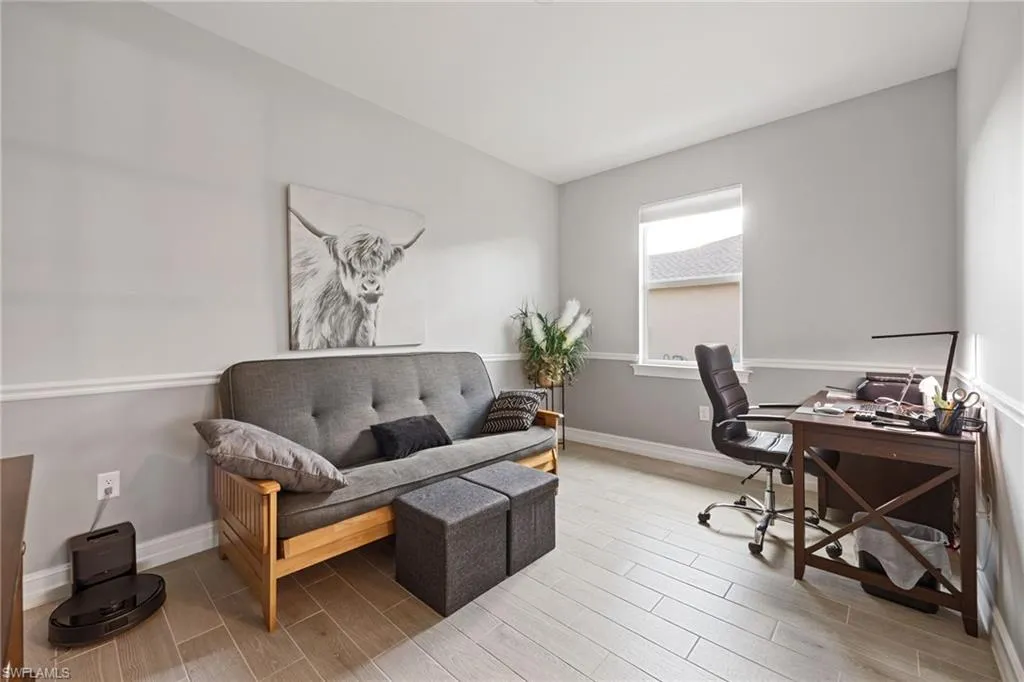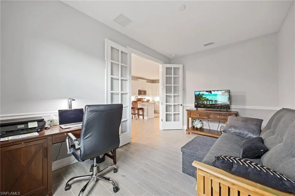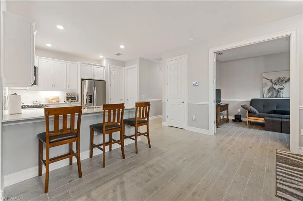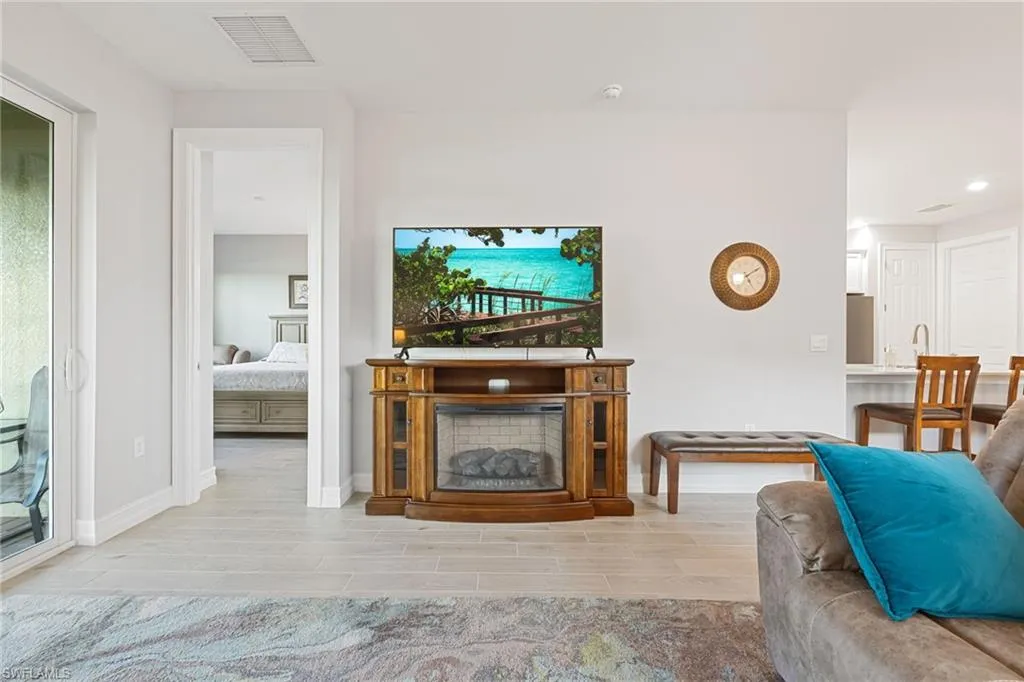 Like-new 2024 Carrington model villa featuring 2 bedrooms, 2 baths, plus a versatile den, offered fully furnished and move-in ready. Gently lived in and situated on an oversized lot with tranquil pond views, this home is loaded with upgrades and thoughtful finishes throughout. Enjoy wood plank tile flooring throughout, custom two-tone paint with elegant chair rail detailing, and an abundance of added cabinetry for enhanced storage. The kitchen impresses with quartz countertops, stylish backsplash, stainless steel gas appliances, and a tankless hot water heater for efficiency and convenience. Impact windows and doors provide peace of mind, while the spacious screened lanai offers the perfect setting to unwind while overlooking the water. Residents of The Preserve enjoy their own private community pool and bocce court just steps away. Located within **Babcock Ranch~America’s first solar-powered town~**you’ll also have access to Founder’s Square, community events, dining, shopping, and a full calendar of activities for all ages. This low-maintenance villa is the ideal blend of comfort, style, and sustainability is ready for its new owner to enjoy the Southwest Florida lifestyle.