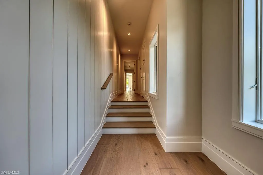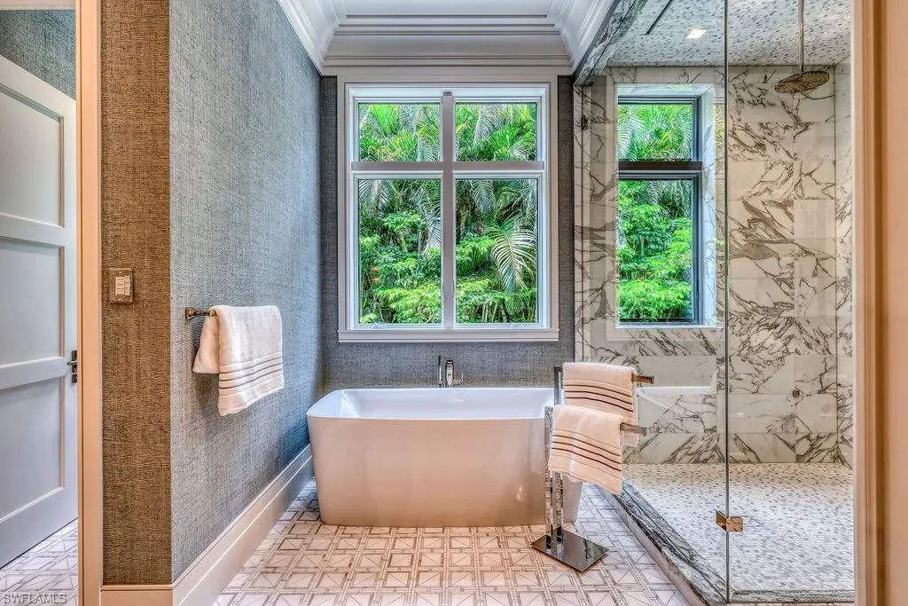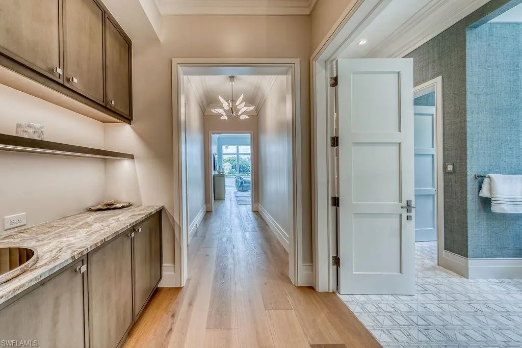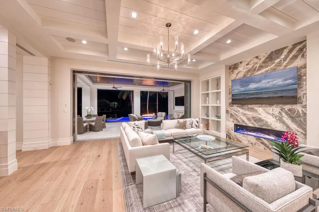 Key enhancements are underway to improve this already remarkable property!! Just beyond its stately front gates lies one of the most exciting New Construction opportunities on the market today. With 140 feet of water frontage this magnificent home built by A. Vernon Allen Builder can accommodate a large boat and provides no bridge access to the Gulf. Delivering a coastal-inspired aesthetic this home features a show-stopping 80-FOOT POOL AND SPA COMPLEX with a 3-sided infinity spill-over edge, linear fire features, sun shelf, Brazilian hardwood decking and an embedded firepit. Sliding glass doors fully pocket away for a seamless transition from the expansive outdoor area to a spacious interior which includes: 2 sumptuous primary suites (one upstairs and one downstairs), 4 guest suites, whole-home generator, thoughtfully placed wood accents, an elevator, built-in wine nook, Lutron lighting system with Control 4 automation, a steam shower and an extended lanai with an outdoor pool bath. This impressive property exudes quality and is enveloped by lush, tropical landscaping. With a cul-de-sac location providing extra privacy you’ll feel as though you’ve entered your own secluded resort; a world unto itself.