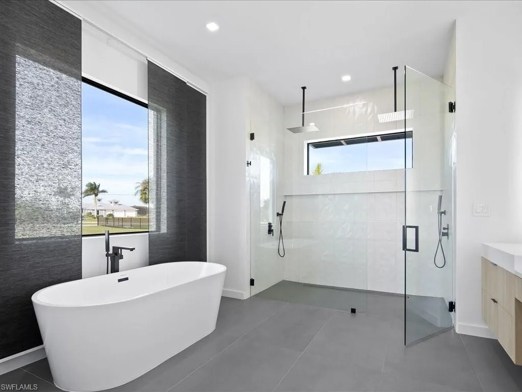 The gourmet kitchen showcases custom cabinetry, an induction cooktop, convection wall oven, and high-end finishes designed for both style and performance. The luxurious primary suite features dual rainfall showers, a deep soaking tub, and sophisticated lighting, creating a spa-like retreat.
