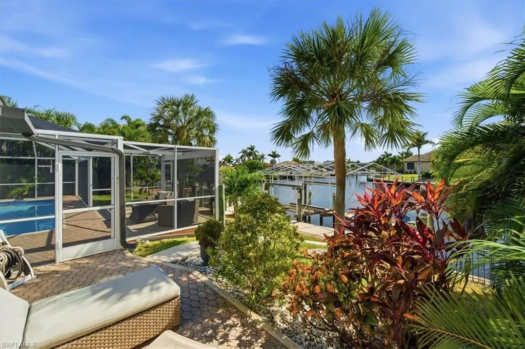 Waterfront with Gulf access! Discover the best of Southwest Florida living in a prime location close to vibrant dining, boutique shopping, and everyday conveniences. This waterfront residence is designed for those who value both relaxation and recreation, offering an inviting blend of indoor comfort and exceptional outdoor amenities. Step outside and experience your own private oasis. Spend sunny afternoons lounging by the beautifully refinished pool, gather with friends beneath the tiki-hut for game day, or enjoy an evening meal on the spacious screened lanai as soft breezes roll in from the canal. With a private dock and boat lift just steps from your door, spontaneous boat rides, fishing excursions, or sunset cruises are always within reach. Inside, the home welcomes you with warm, open living spaces ideal for everyday living and entertaining. The main living room provides a comfortable gathering area, complemented by a dedicated dining room and a bright breakfast nook overlooking the pool. The updated kitchen stands out with premium LG appliances, rich custom cabinetry, and granite countertops, perfect for the home chef who appreciates quality and functionality. The primary suite is a peaceful retreat featuring serene canal views, an updated spa-inspired bathroom, a generous walk-in closet, and access to a private screened sitting area. Guests will enjoy two well-appointed bedrooms, one with sliding doors opening directly to the pool deck, and the other offering the convenience of ajoining bath that doubles as a guest bathroom. The oversized laundry room offers exceptional storage options and can also serve as a pantry or utility space. Recent improvements include plantation shutters, fresh exterior paint, updated fencing, an HVAC system installed in 2022, impact windows in select areas, hurricane shutters, a newer pool heater, and durable luxury vinyl plank flooring. The roof, replaced in 2016, adds additional peace of mind. Move-in ready and thoughtfully maintained, this home invites you to embrace a true Florida lifestyle—easygoing, vibrant, and full of possibilities.