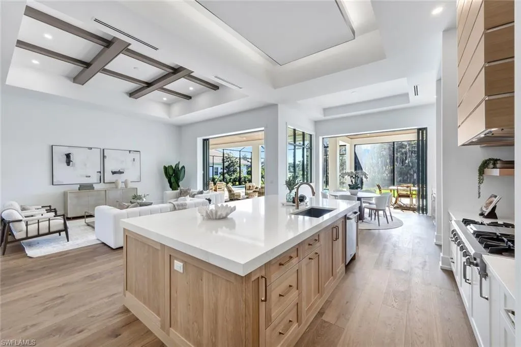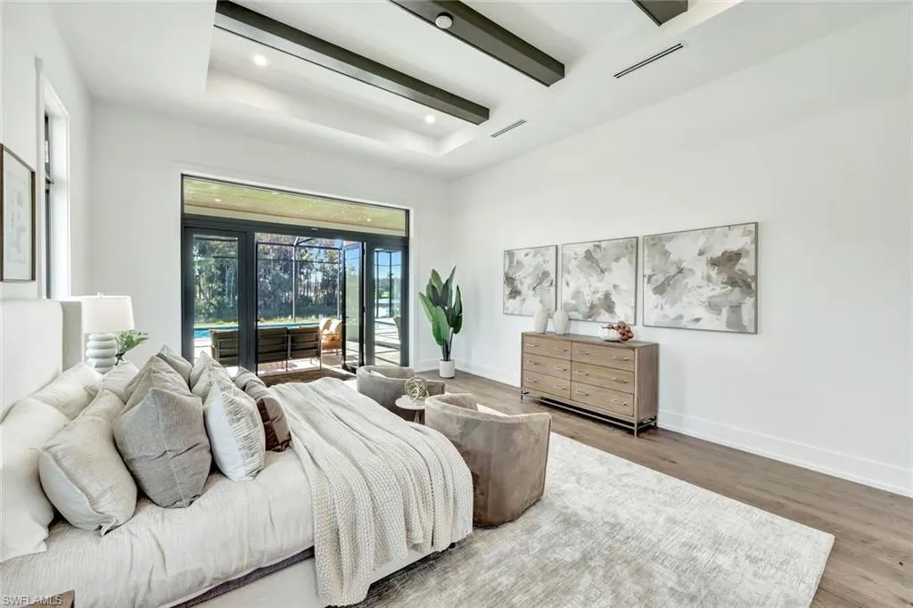 This unparalleled new construction home offers breathtaking southern views of both a pristine lake and an immaculate golf course, combining luxury living with natural beauty. Designed with exquisite craftsmanship and attention to detail, this home features soaring ceilings, expansive windows that flood the space with natural light, and an open-concept layout perfect for both relaxation and entertaining. The gourmet kitchen is a chef’s dream, boasting numerous appliances, custom cabinetry with hidden walk-in pantry and elegant quartz countertops throughout. The primary suite is a private retreat, complete with a spa-inspired ensuite shower and a spacious walk-in closet. Two other secondary suites are equally impressive in size with soaring ceilings, large walk-in closets and private bathrooms. This home features an oversized garage, thoughtfully designed to provide ample space for multiple vehicles, storage, and more. With extra-wide bays and extended depth, it easily accommodates larger vehicles or recreational equipment. Beyond parking, this versatile space is completely insulated and can serve as a workshop, home gym, or hobby room. Whether you’re a car enthusiast, need additional storage, or want a flexible space for projects, this oversized garage offers unmatched convenience and possibilities. Outdoor living is elevated with two massive, covered patio living spaces, fully equipped outdoor kitchen, pool and spa, and seamless indoor-outdoor transitions, allowing you to fully immerse yourself in the stunning surroundings. Every inch of this home exudes sophistication and modern elegance, offering a rare opportunity to own a masterpiece in a premier location. At the heart of Wildcat Run is an Arnold Palmer Signature-designed golf course, renowned for its excellent conditions and challenging layout suitable for golfers of all skill levels. Complementing the golf experience is a 26,000-square-foot clubhouse that offers both formal and informal dining options, pro shops, and locker rooms. Wildcat Run’s prime location in Estero provides residents with convenient access to nearby shopping, dining, and entertainment options, blending tranquility with modern conveniences.