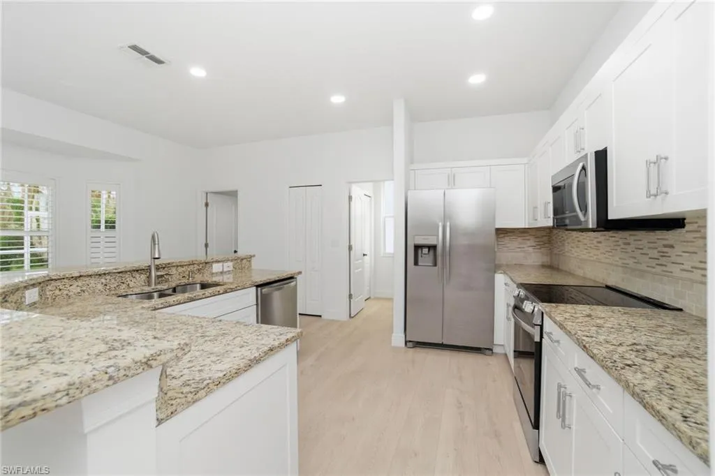 Stop the search—your dream home has officially arrived. This fully renovated, move-in ready 5-bedroom, 3.5-bathroom masterpiece sits within the coveted gated, public golf community of Stoneybrook in Estero, and it’s overflowing with stylish upgrades at every turn. From the moment you step inside, you’ll feel the difference. Seamless new flooring, updated coastal-inspired kitchen cabinetry, and all-new stainless steel appliances create a clean, modern flow that instantly elevates the space. Every bathroom has been completely re-imagined with fresh, on-trend coastal finishes, complemented by new fans, fixtures, and thoughtfully curated design details throughout the home. A brand-new impact-rated front door and designer impact garage door enhance both security and stunning curb appeal. With 2,643 sq ft of beautifully redesigned living space, this home delivers effortless comfort for the entire family. The open kitchen spills into a bright, welcoming family room—perfect for hosting gatherings or enjoying quiet nights in. The primary suite serves as a true sanctuary with its spacious walk-in closet and spa-like bathroom. Upstairs, a versatile loft offers the ideal setup for a home office, gym, play space, or media zone. The upgrades continue outdoors with fresh exterior paint, a sparkling saltwater pool, and a large private backyard—your very own slice of Florida paradise. Enjoy shaded afternoons and warm evenings under the screened lanai, or entertain with ease in your beautifully refreshed outdoor oasis. Major system updates, including a 2017 roof, updated plumbing, and impact features throughout, ensure long-term peace of mind. Living in Stoneybrook means embracing a lifestyle packed with amenities: an exercise room, three community pools, tennis courts, pickleball, volleyball, basketball, bocce, a playground, a baseball field, and a public pay-as-you-play golf course with no mandatory membership. And the location? Unbeatable. You’re minutes from Publix, Miromar Outlets, Hertz Arena, FGCU, I-75, RSW Airport, incredible dining, and the world-renowned Gulf beaches. A home this renovated, this stylish, and this well-located doesn’t come around often. This is Estero living at its best—move fast.