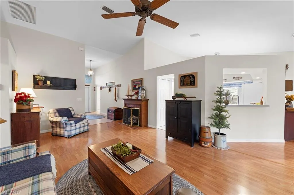 Located in Preferred zone X NO FLOOD ZONE! Offered by the original owners who worked with the builder to customize and expand several rooms in this meticulously maintained home. The formal dining room, 2nd bedroom, garage, foyer, and lanai are all larger than the original floor plan, making this home stand out. A prime location! Located in the highly desirable Islands at Three Oaks community across from Three Oaks Park. The gracious floor plan offers 2,008 square feet of living space that includes the enclosed lanai (26×10″) There is 2,578 total square footage. The oversized garage (19′ 8″ x 25′ 3″) is perfect for a car collector, workshop, golf cart storage, man cave, or even converting part of it into an added storage room connected to the laundry area.