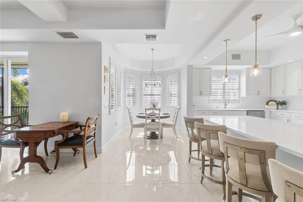 Welcome to Avellino Isles, where luxury, comfort, and resort-style living come together in this stunning 3-bedroom plus den, 3.5-bath residence with a private elevator and an impressive 3,282 sq. ft. of living space. This beautifully updated condo features an elegant renovated kitchen, new storm shutters, and an expansive screened balcony offering serene treetop views—perfect for relaxing or entertaining. Additional enhancements include epoxy garage floors, added storage shelving in the garage, and updated AC units and hot water heater, providing peace of mind and long-term value. The spacious floor plan includes a generous primary suite, two ensuite guest rooms, and a versatile den ideal for a home office or media space. Avellino Isles is dog friendly, and its peaceful setting is enhanced by the exceptional amenities available at the Vineyards Country Club, where membership is optional, featuring championship golf courses, a world-class fitness center, spa, tennis, pickleball, and both casual and fine dining options. This home is ideal for those seeking an active, upscale Naples lifestyle with the convenience of maintenance-free living and resort amenities just moments away.