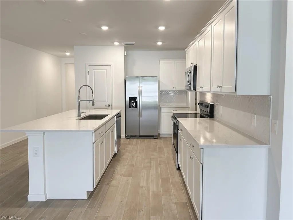 Beautiful new construction townhome in the heart of Midtown at Bonita Springs! This 3 bed, 2.5 bath modern townhome boasts a spacious open floor plan, a large center island with quartz countertops, Whirlpool stainless steel appliances, and luxury vinyl plank flooring throughout the main. Large master bedroom includes a custom walk-in closet, dual vanity sink and a walk-in shower. The 2 additional bedrooms also offer custom walk-in closets. Conveniently located just steps from the highly anticipated Midtown at Bonita Springs with quick access to I-75, and just a 20 minute drive to the beach