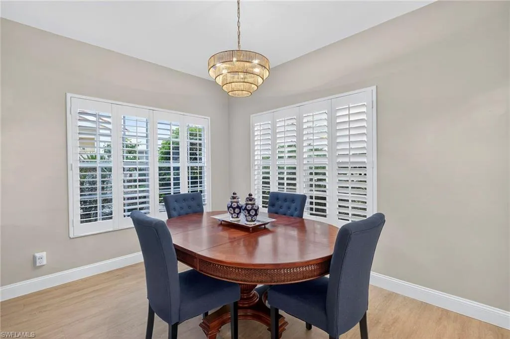 Beautifully updated 3-bedroom, 2-bath lake-view coach home in the desirable gated community of Egrets Walk at Pelican Marsh. This light and bright first-floor end unit features 1,696 sq ft of living space, an attached one-car garage, and a glass-enclosed lanai with serene lake views. The kitchen has been fully remodeled with white custom cabinetry, quartz countertops, and stainless-steel appliances. Driftwood-tone laminate flooring runs throughout—no carpet. Plantation shutters, updated lighting, and a remote lanai sunshade add to the home’s comfort and style. Major updates include a new A/C (2024), new plumbing (2024), water heater (2022), and roof (2019). Egrets Walk residents enjoy two community pools, a clubhouse, fitness center, and direct access via private gate to Mercato and Whole Foods. Pelican Marsh offers top-tier amenities including tennis, pickleball, bocce, and a full social calendar—all within minutes of Vanderbilt Beach. Move-in ready and ideally located for year-round or seasonal living in North Naples.