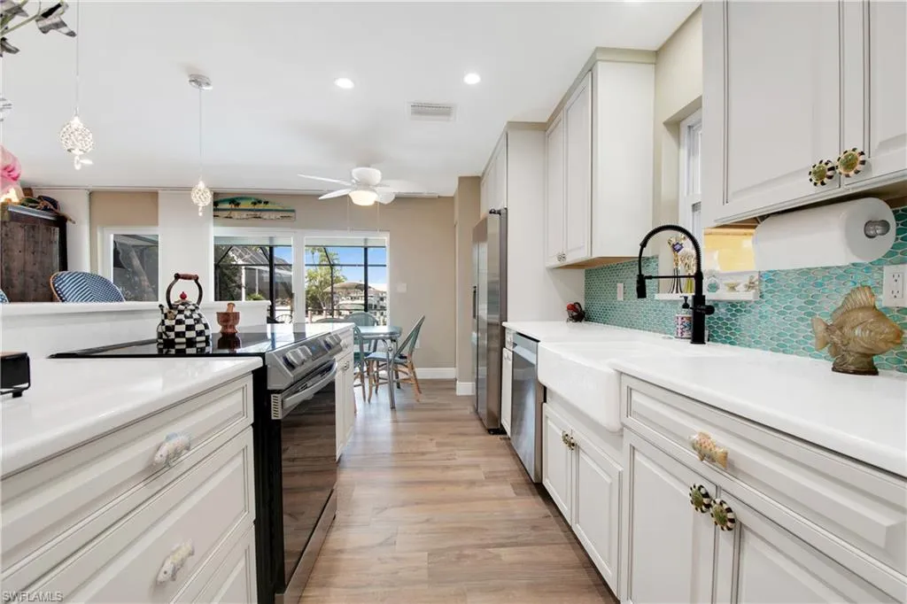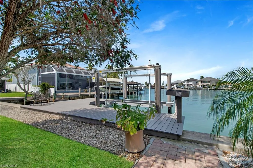 Enjoy the island living lifestyle everyone dreams of from this charming waterfront bungalow on the Beautiful Isles of Capri. Located on Marlin Bay, this house has two bedrooms, two baths, an open floor plan and an in-ground pool. Recent updates include new flooring, kitchen, bathrooms, impact windows and sliders. Park your boat on the new dock and 7,000lb boat lift where you can enjoy almost instant, direct access to the Gulf of Mexico. Watch the dolphins and manatees play in the back yard or hop on the boat and enjoy world class fishing while you explore the 10,000 islands. Isles of Capri is a tropical island that boasts and abundance of wildlife, four great restaurants and three marinas. Located one mile from Marco Island & only 20 minutes away from Downtown Naples with its sophisticated shopping & five star dining. Our area is famous for its white sand beaches, world class fishing & boating and fantastic golfing. Capri is the perfect place to sit back, relax, unwind and let the sights, sounds and smells sooth your mind, body and soul.