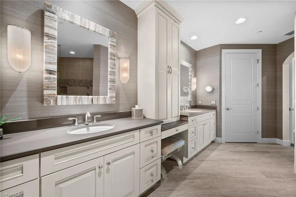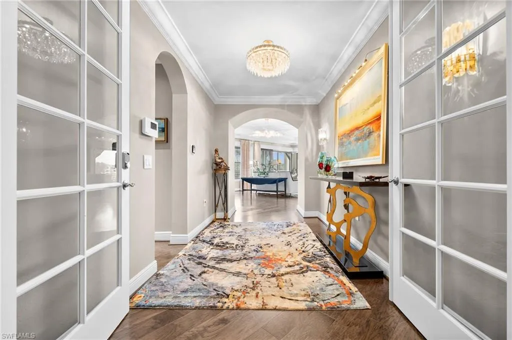 Stunning and spacious “penthouse” residence in Carrara at Talis Park featuring 3 bedrooms plus a den, 3.5 baths, and a private elevator that opens directly into the home. Professionally decorated by the award-winning Collins & DuPont Design Group, this residence offers extensive upgrades, custom millwork, designer lighting, and elegant ceiling details throughout.