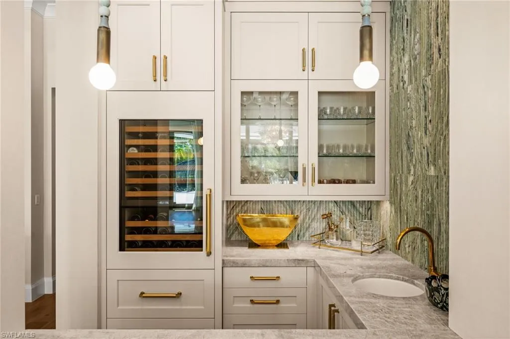 At the heart of the home, the wine room becomes an unexpected moment of delight. Wrapped entirely in gold, it shimmers like a jewel box; a place that instantly shifts the energy of the home and reminds you that luxury can be playful, too.